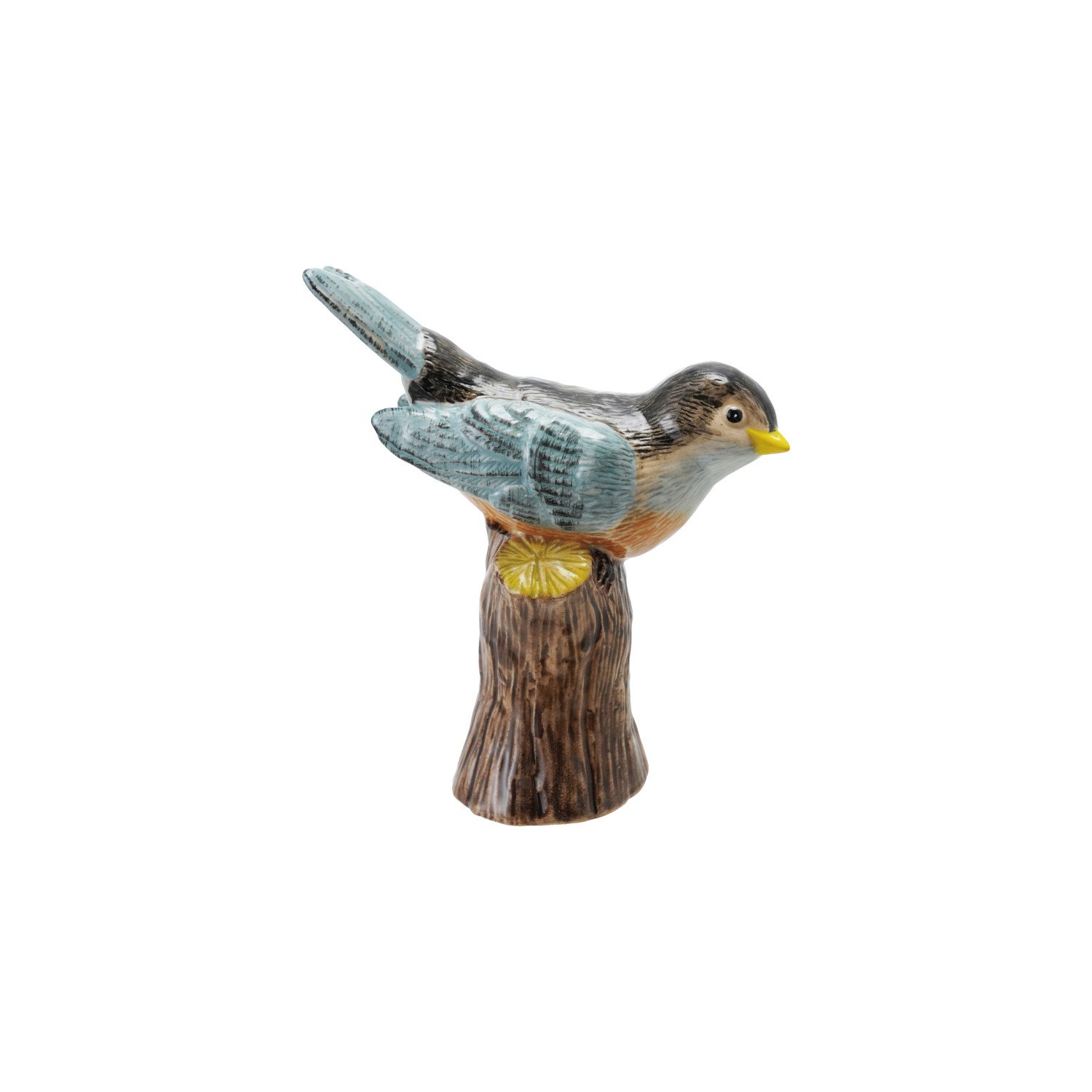 Catalog Name: 5-1/4"L x 3-1/2"W x 6-1/4"H Hand-Painted Stoneware Bird on Log Shaped Vase, Multi Color