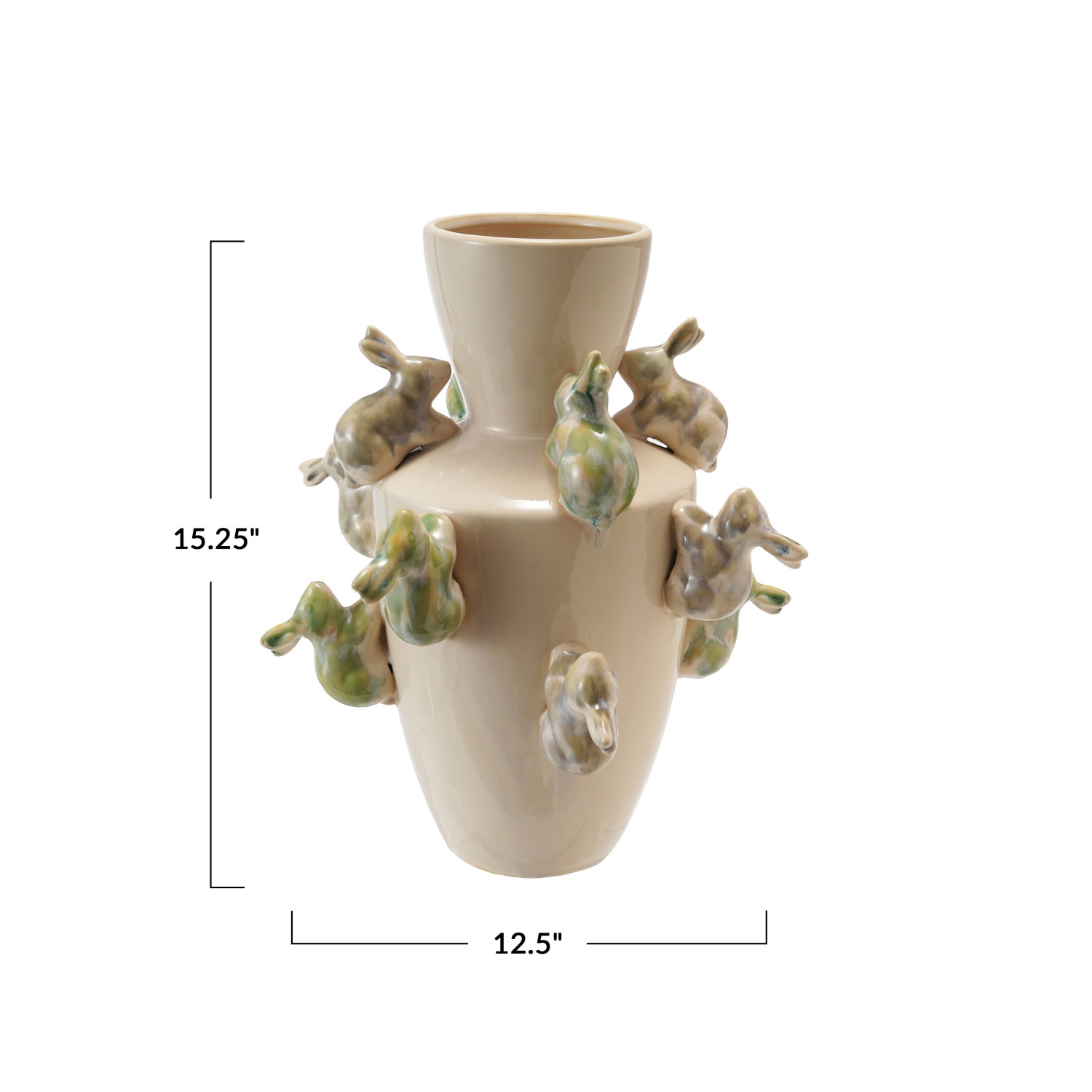 Catalog Name: 12-1/2" Round x 15-1/4"H Stoneware Vase w/ 3D Rabbits, Reactive Glaze, Multi Color, Truck Ship (Each One Will Vary)