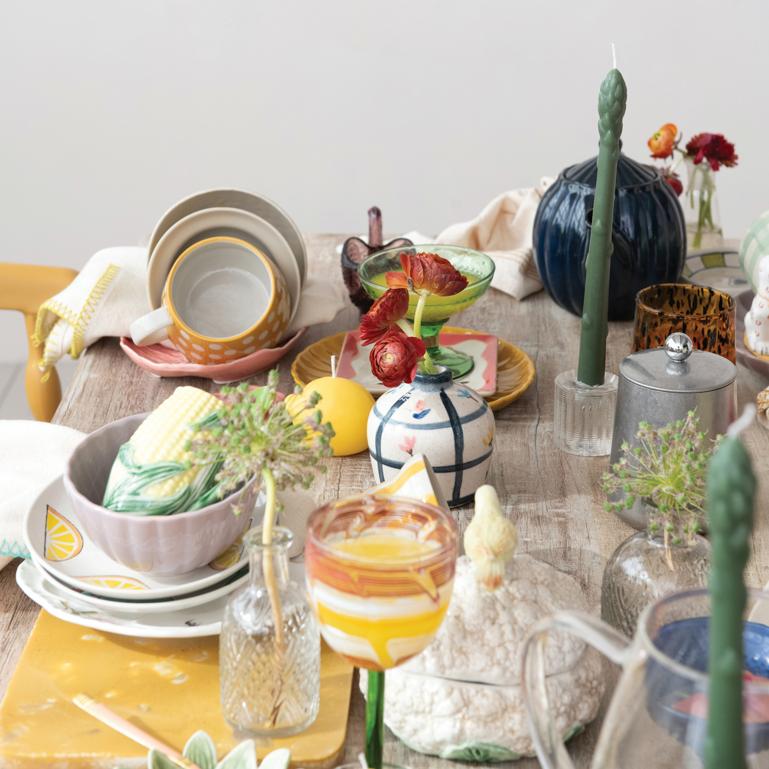 Catalog Name: 3-1/2" Round x 3-3/4"H Hand-Painted Terra-cotta Vase w/ Flowers & Grid Pattern, Crackle Glaze, Multi Color (Each One Will Vary)