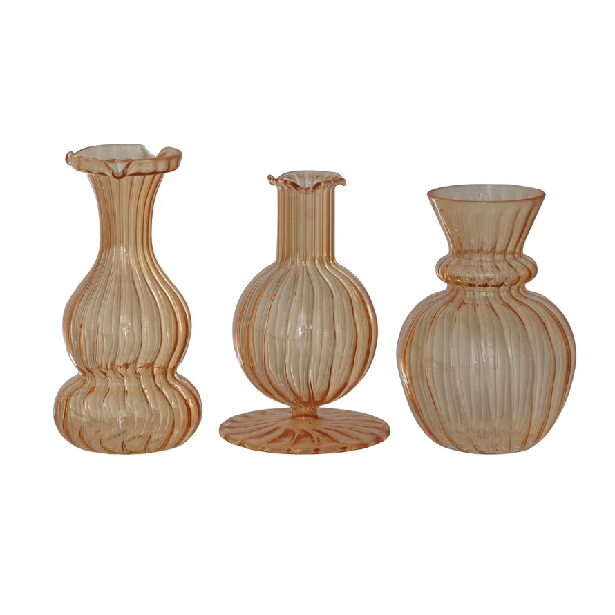 Catalog Name: 4"H - 5-1/4"H Hand-Blown Glass Vase, Apricot Color, 3 Styles