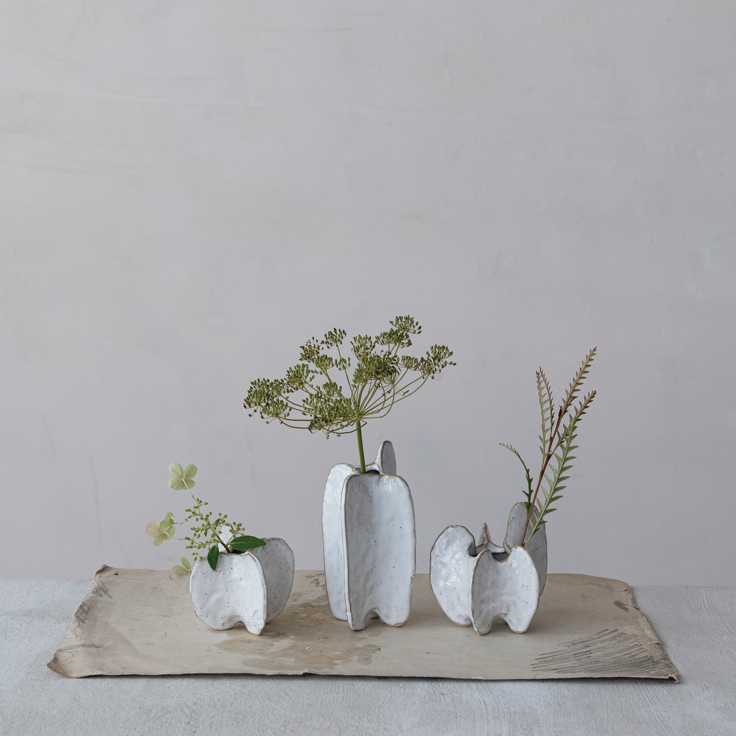 Stoneware Organic Shaped Vase, White, 3 Styles (Each One Will Vary)