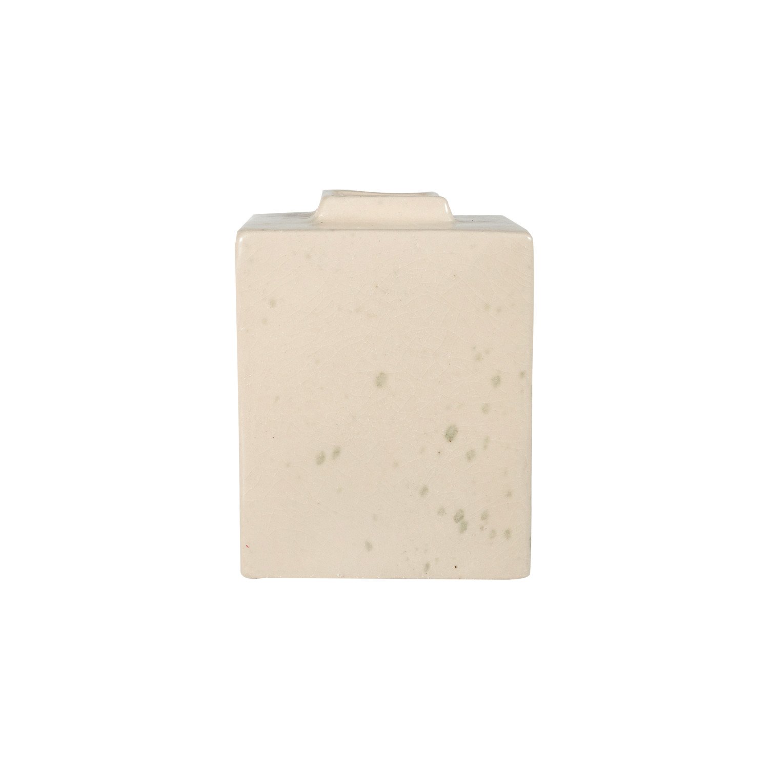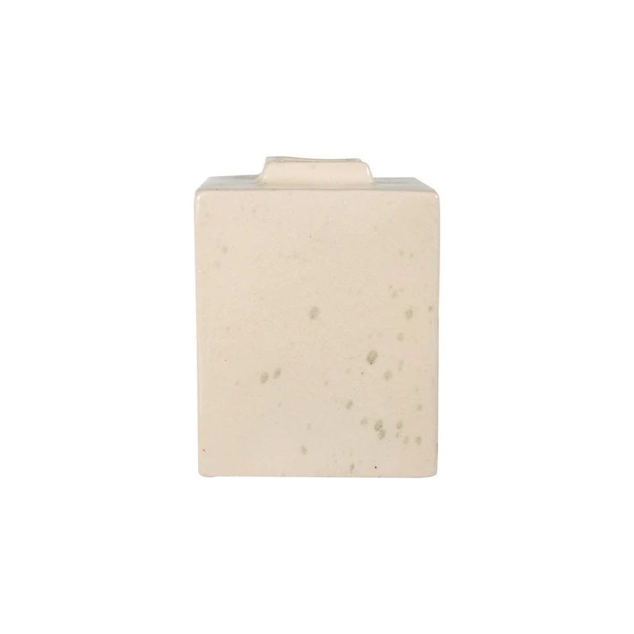 Catalog Name: 4-3/4" Square x 6"H Stoneware Vase, Reactive Crackle Glaze, Cream Color (Each One Will Vary)
