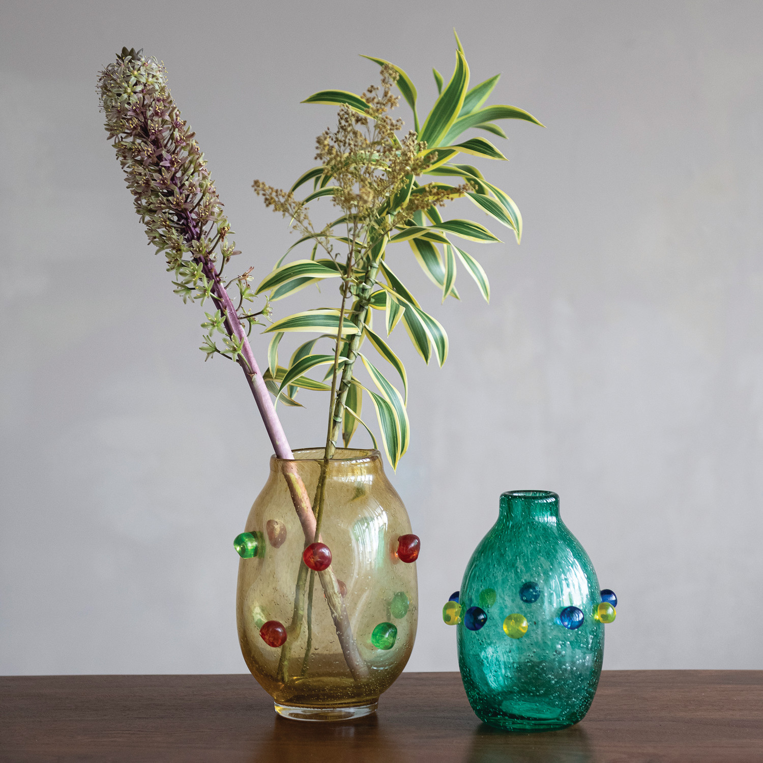 Hand-Blown Glass Vase with 3D Balls, Orange Color, Red & Green (Each One Will Vary)