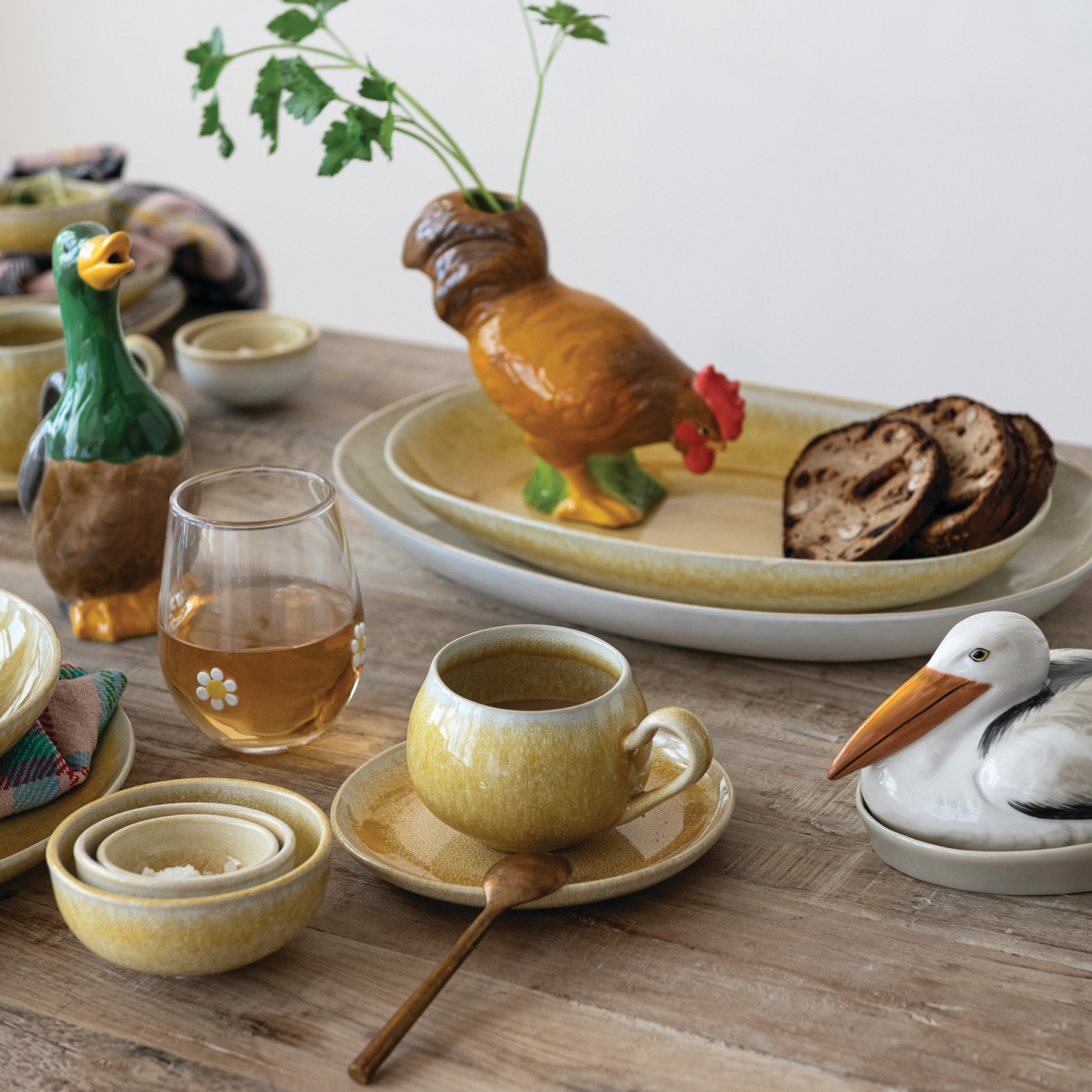 Catalog Name: 7-1/2"L x 3-1/2"W x 6-1/2"H Hand-Painted Stoneware Rooster Shaped Vase, Multi Color