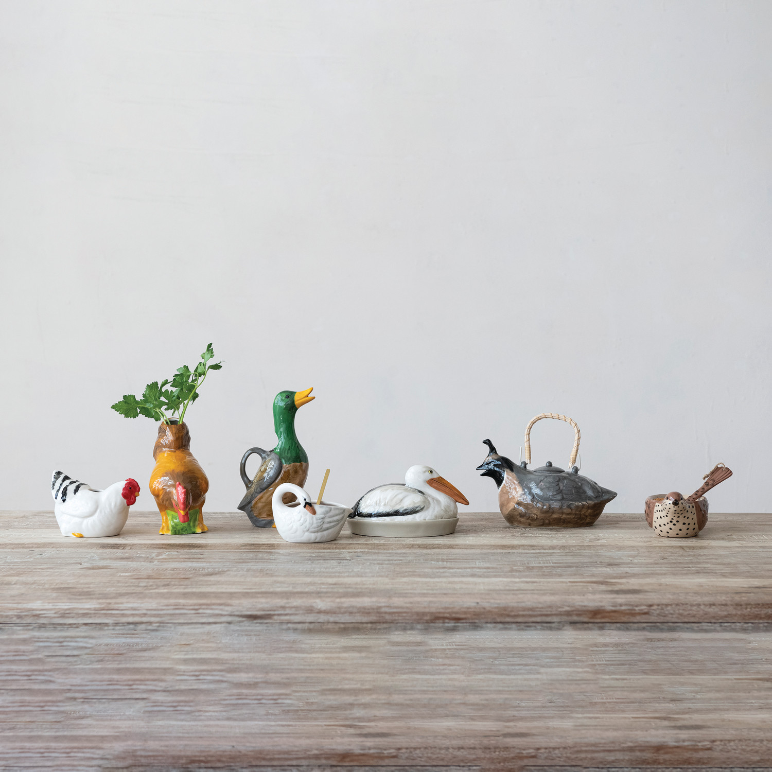 Catalog Name: 5-1/2"L x 3-1/4"W x 3-3/4"H Hand-Painted Stoneware Hen Shaped Vase, Multi Color