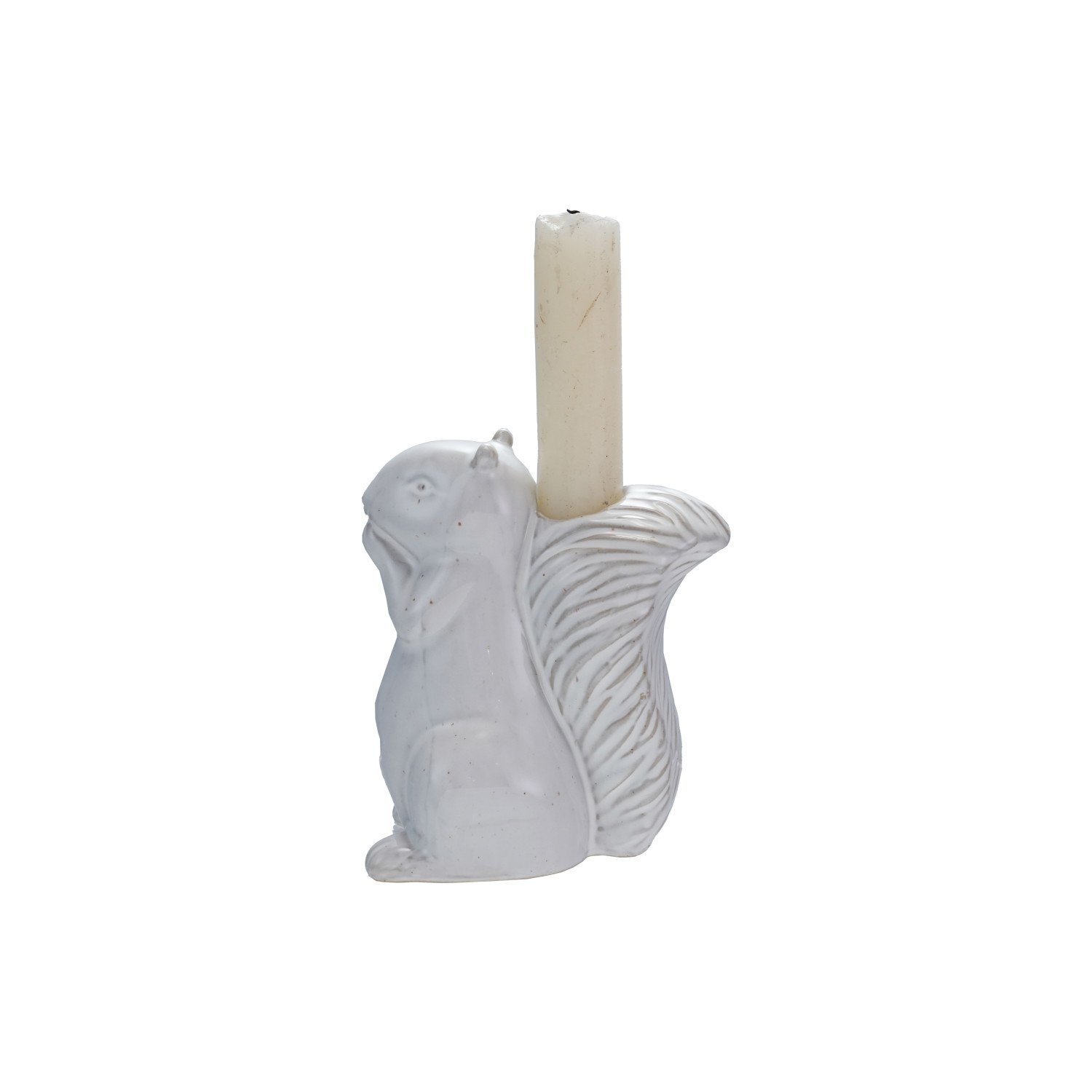 Stoneware Squirrel Shaped Taper Holder, White (Each Will Vary)