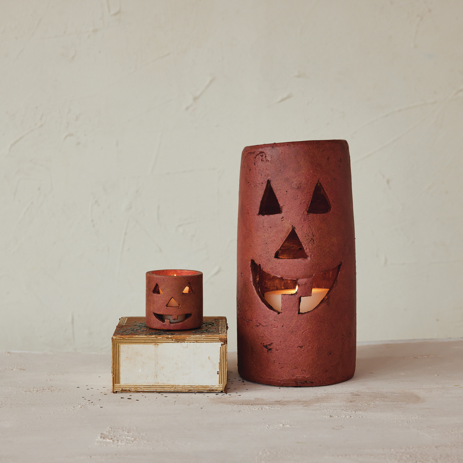 Terra-cotta Hurricane with Cut-Out Jack-O-Lantern Face