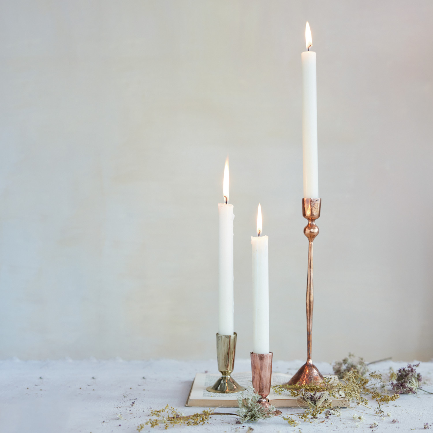 Hand-Forged Iron Taper Holder, Brass Finish
