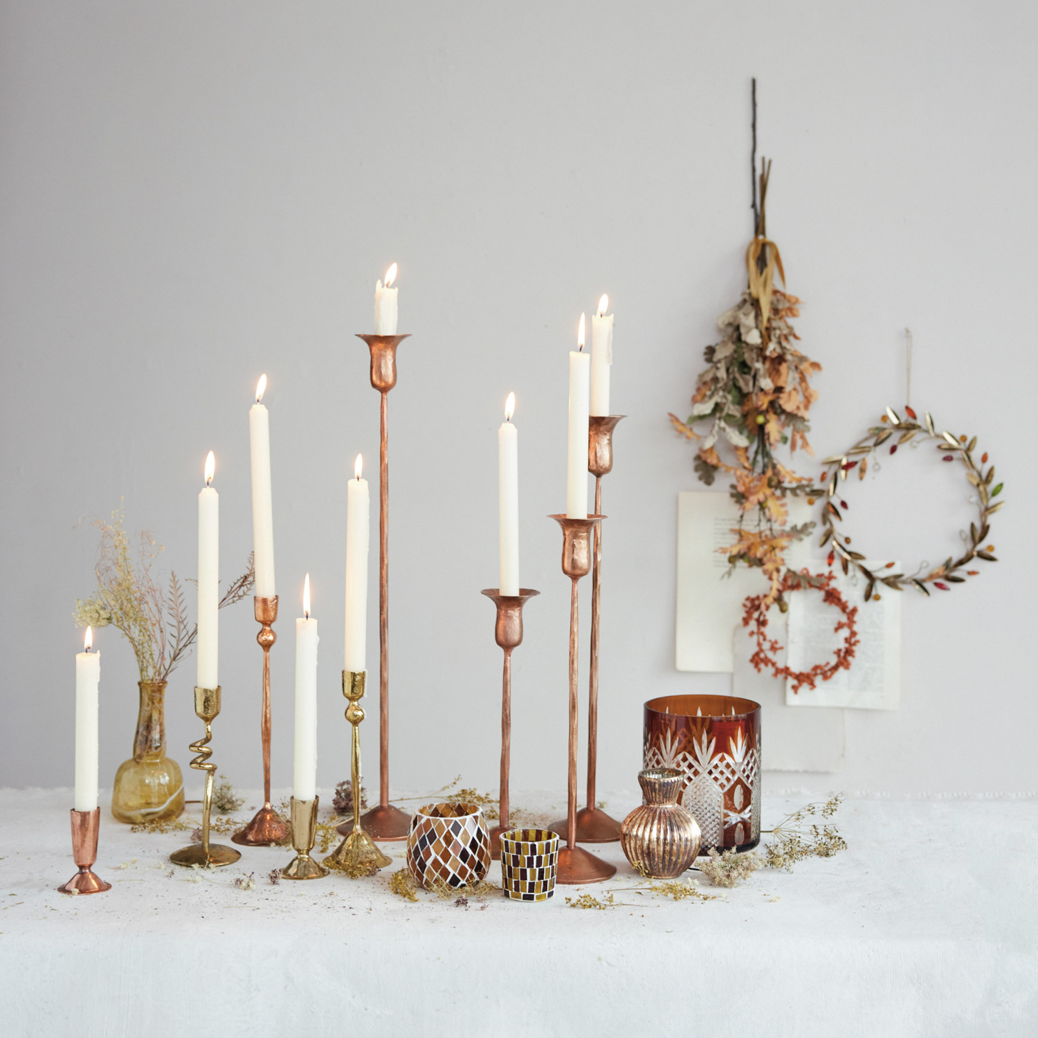 Catalog Name: 2" Round x 3"H Hand-Forged Iron Taper Holder, Copper Finish