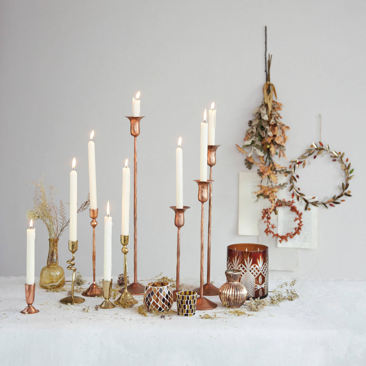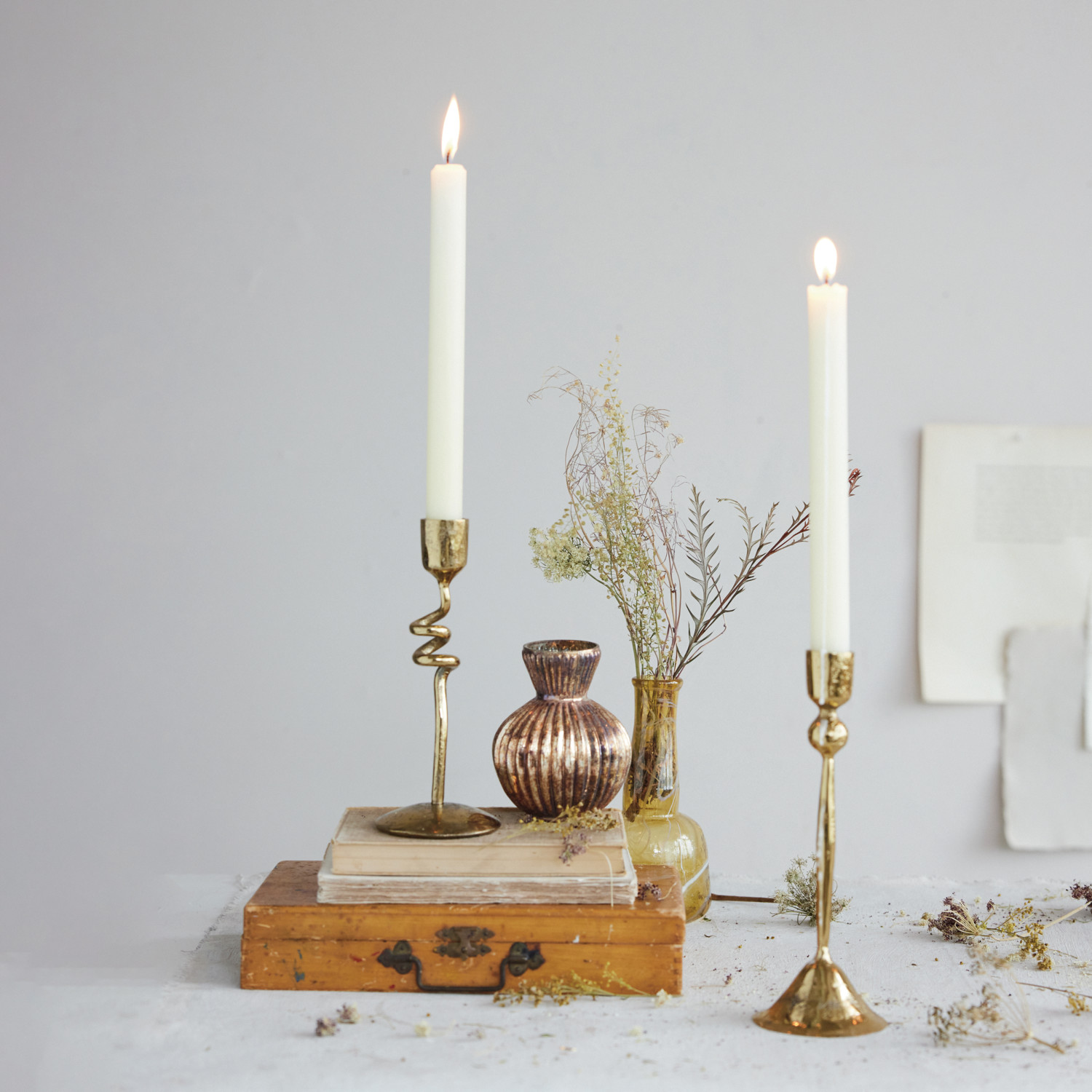 Catalog Name: 2-3/4" Round x 8-1/4"H Hand-Forged Iron Taper Holder, Brass Finish