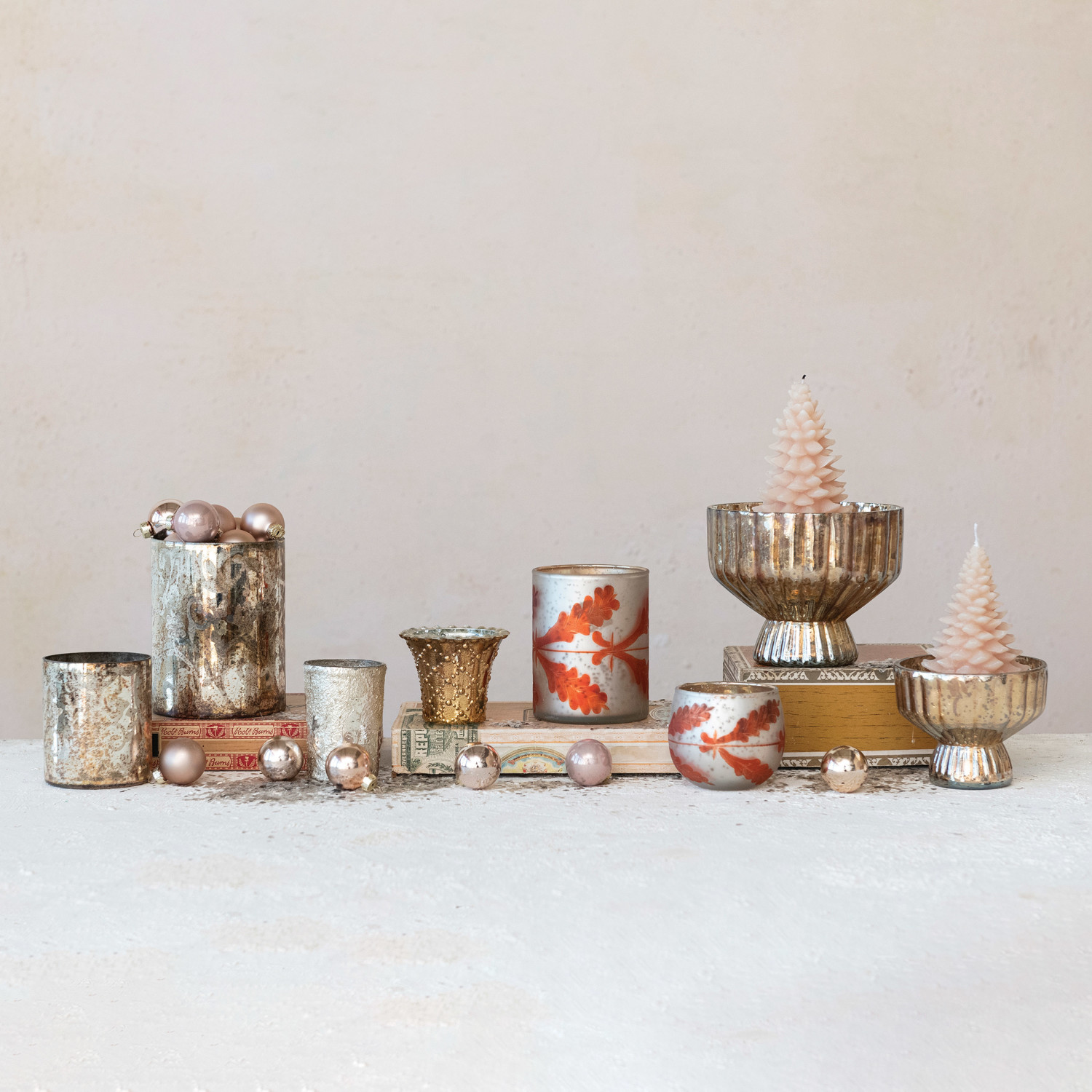 This coral mercury glass candleholder is a small treasure that offers a big impact. The matte silver finish provides a subtle sheen, while the coral color adds a pop of warmth, making it a standout piece. Etched designs on the glass create a mesmerizing light pattern, inviting a sense of calm and beauty wherever it's placed. Its compact size allows for versatility in placement, ensuring that this candleholder will be a delightful addition to any setting, be it a festive occasion or a quiet evening at home. Elegant and understated, it's a piece that will effortlessly elevate every beautiful space. An exquisite mercury glass tealight or votive candleholder, featuring a matte silver finish with a vibrant coral hue, etched to perfection. A versatile decor piece, its matte silver and coral tones blend seamlessly with minimalist or color-rich design palettes. Ideal for intimate dinners or as a tranquil accent, it casts a serene light that dances through its etched patterns.
