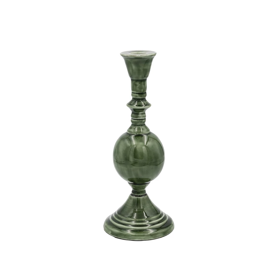 Catalog Name: 4" Round x 10"H Enameled Metal Taper Holder, Green
