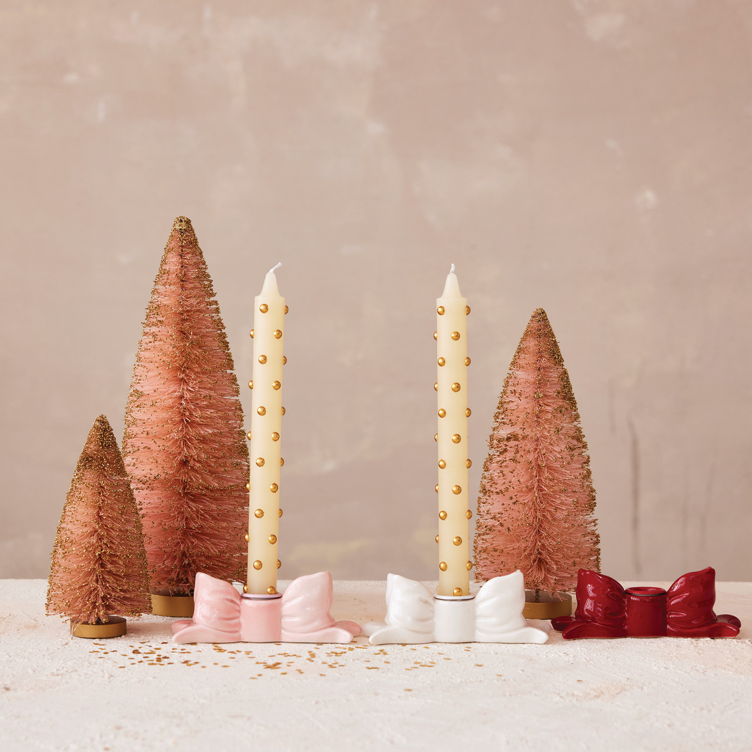 Catalog Name: 5"W x 2"H Stoneware Bow Shaped Taper Holder, 3 Colors