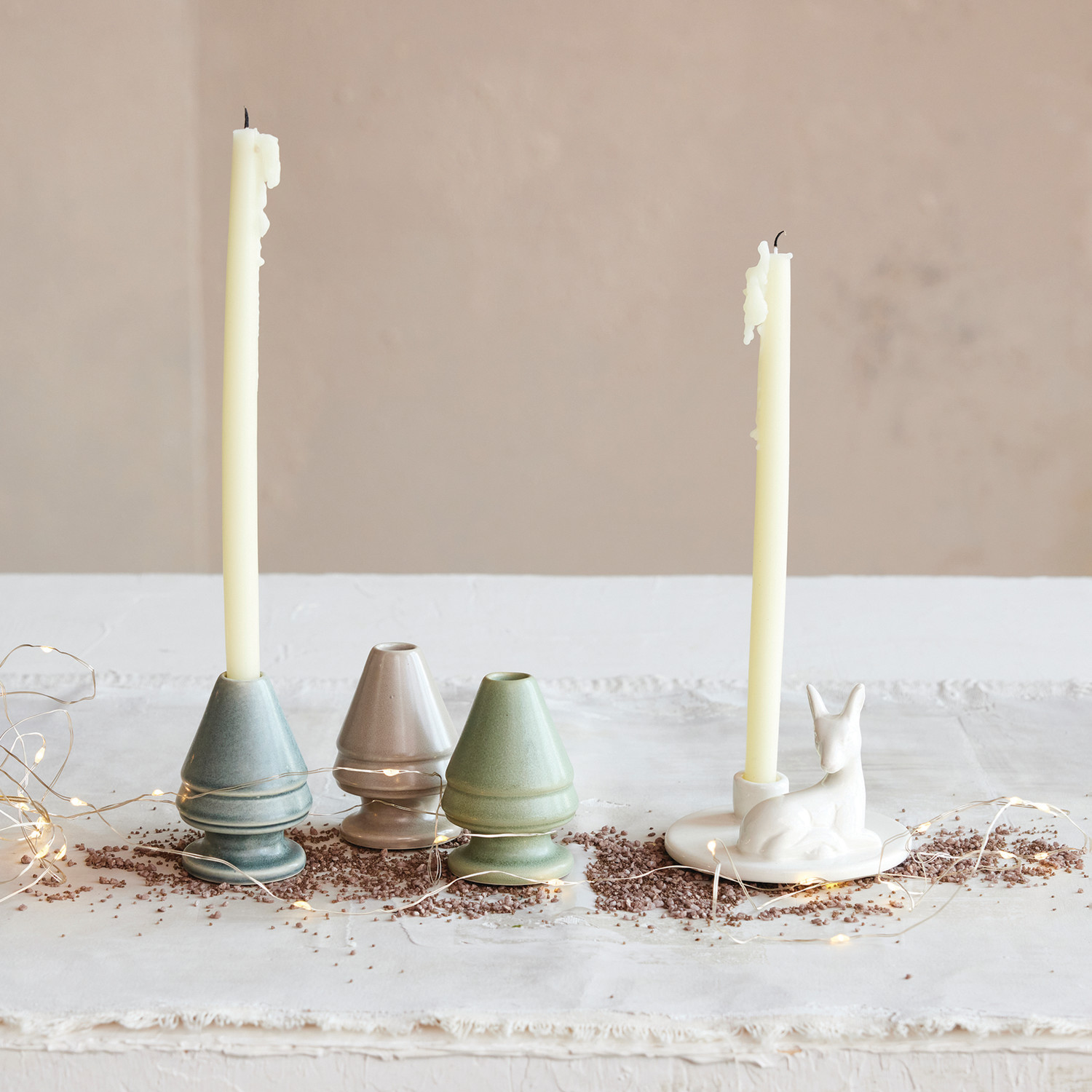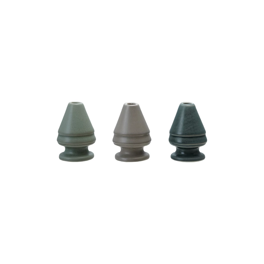 Catalog Name: 2" Round x 2-3/4"H Stoneware Tree Shaped Taper Holder, Reactive Glaze, 3 Colors (Holds 1/2" Taper) (Each One Will Vary)