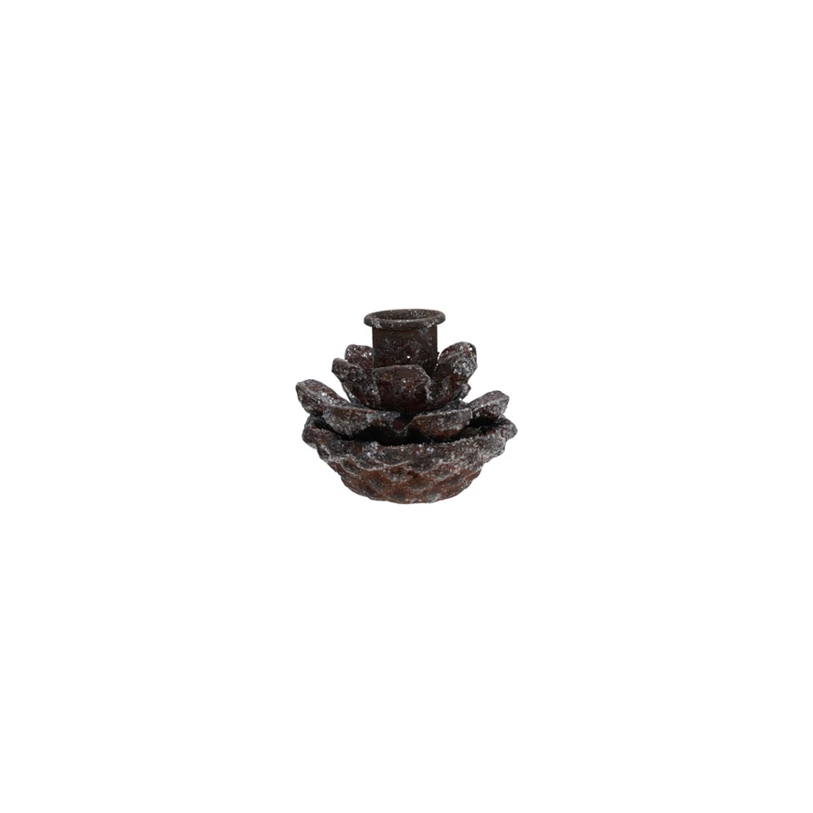 Catalog Name: 3" Round x 2-1/2"H Metal Pinecone Taper Holder, Ice Finish, Brown
