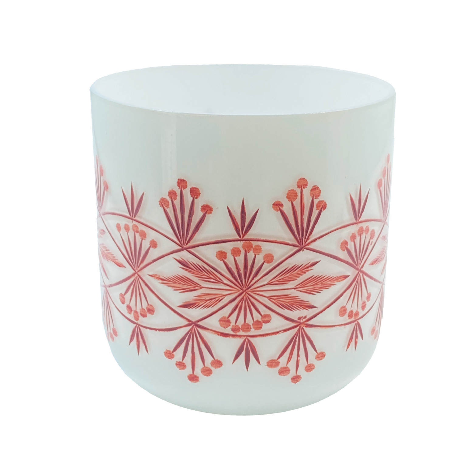 Hand-Blown Etched Glass Tealight/Votive Holder with Design, White & Red