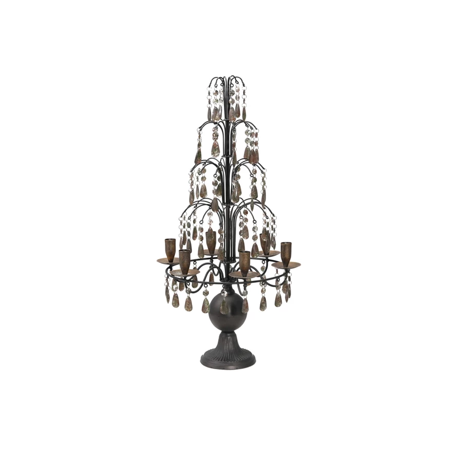 Metal Candelabra with Smoke Color Acrylic Crystals, Matte Black (Holds 6 Tapers)