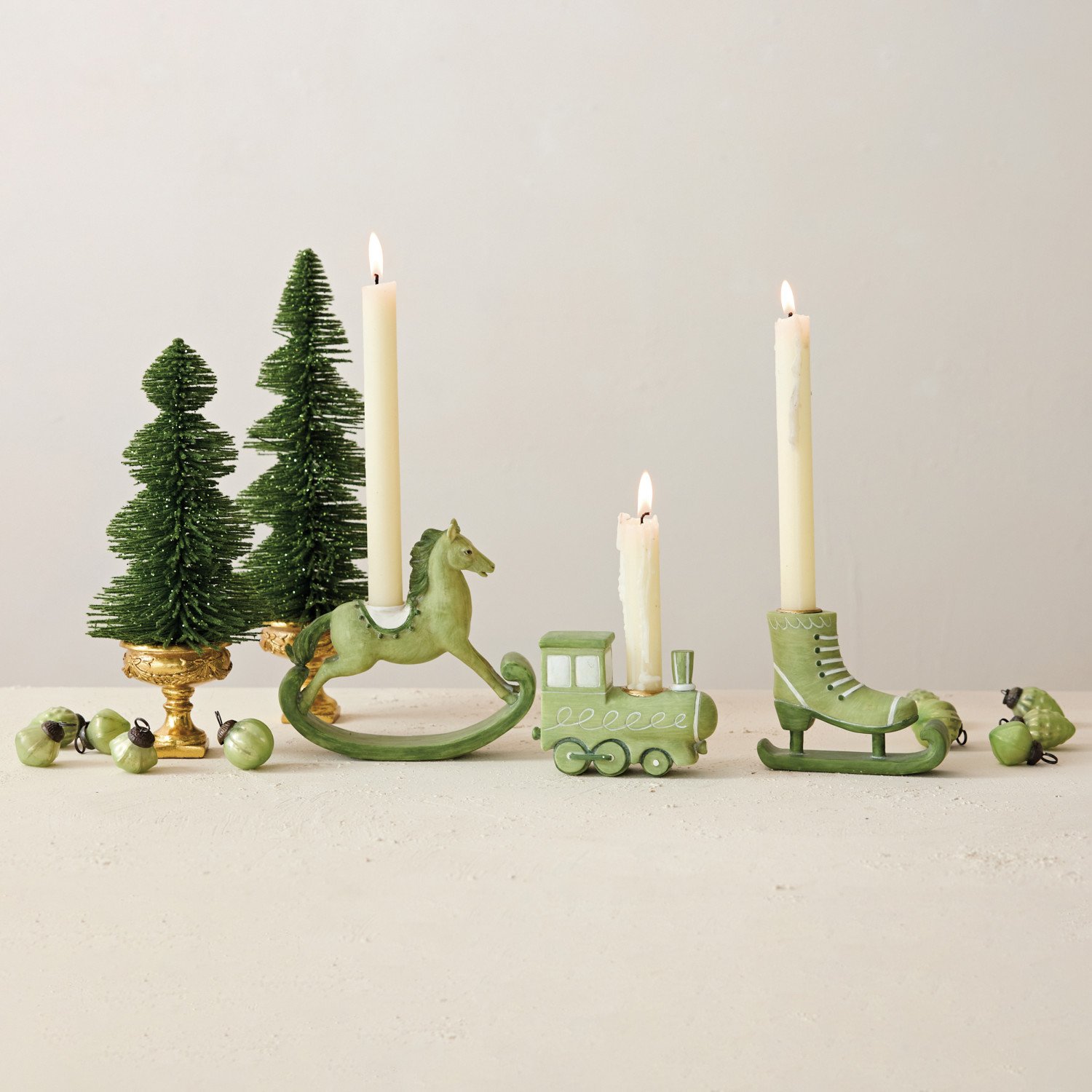 Resin Rocking Horse Shaped Taper Holder, Green & White ©