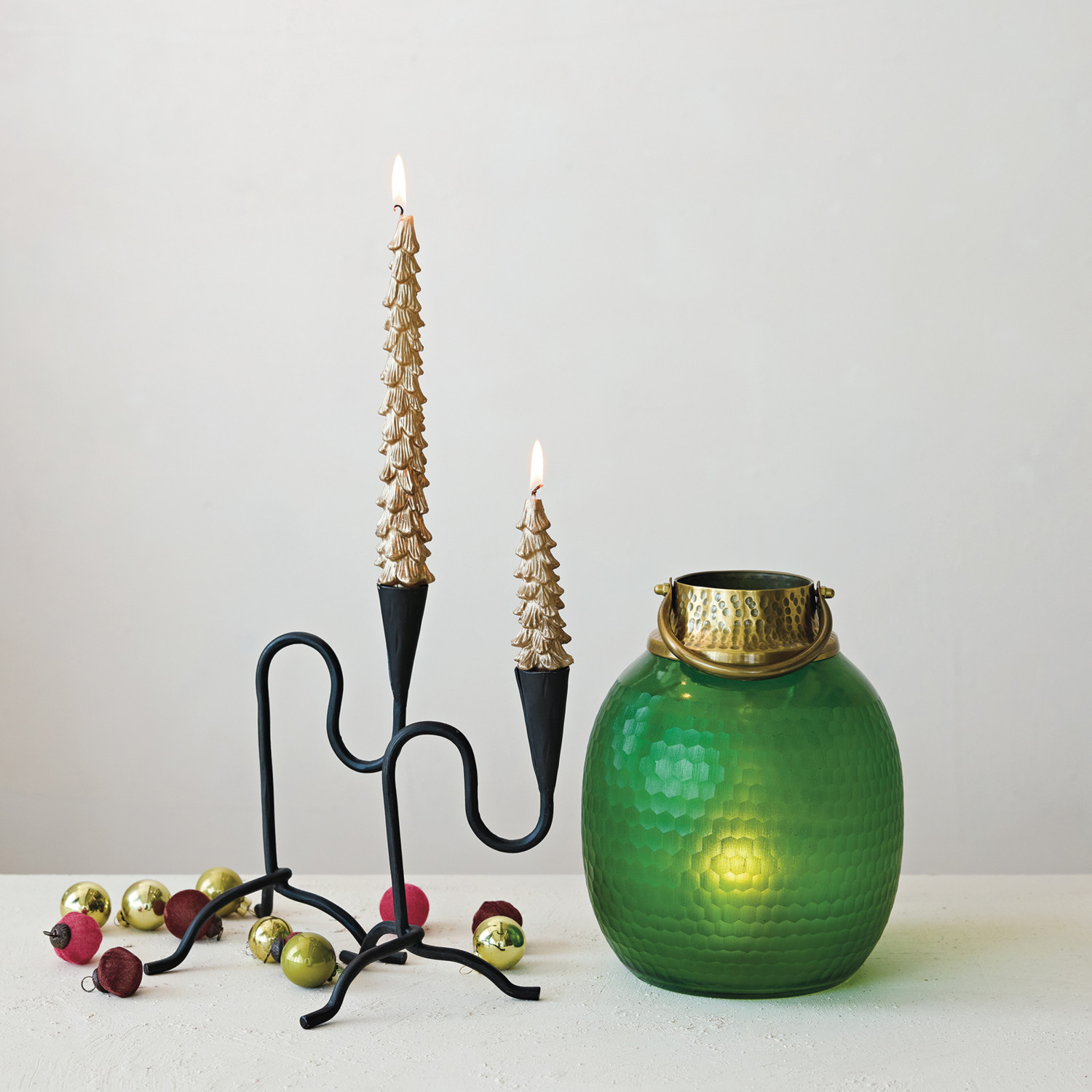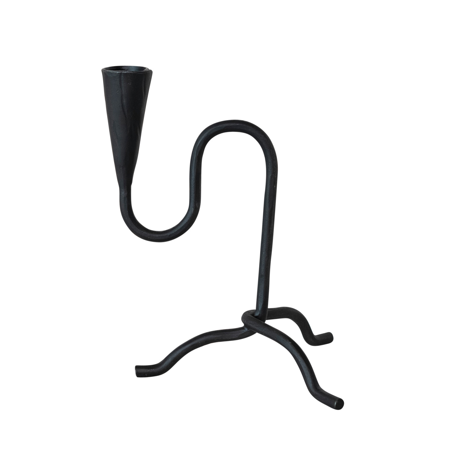 Catalog Name: 5"L x 6"W x 6-1/2"H Hand-Forged Iron Curved Taper Holder, Black