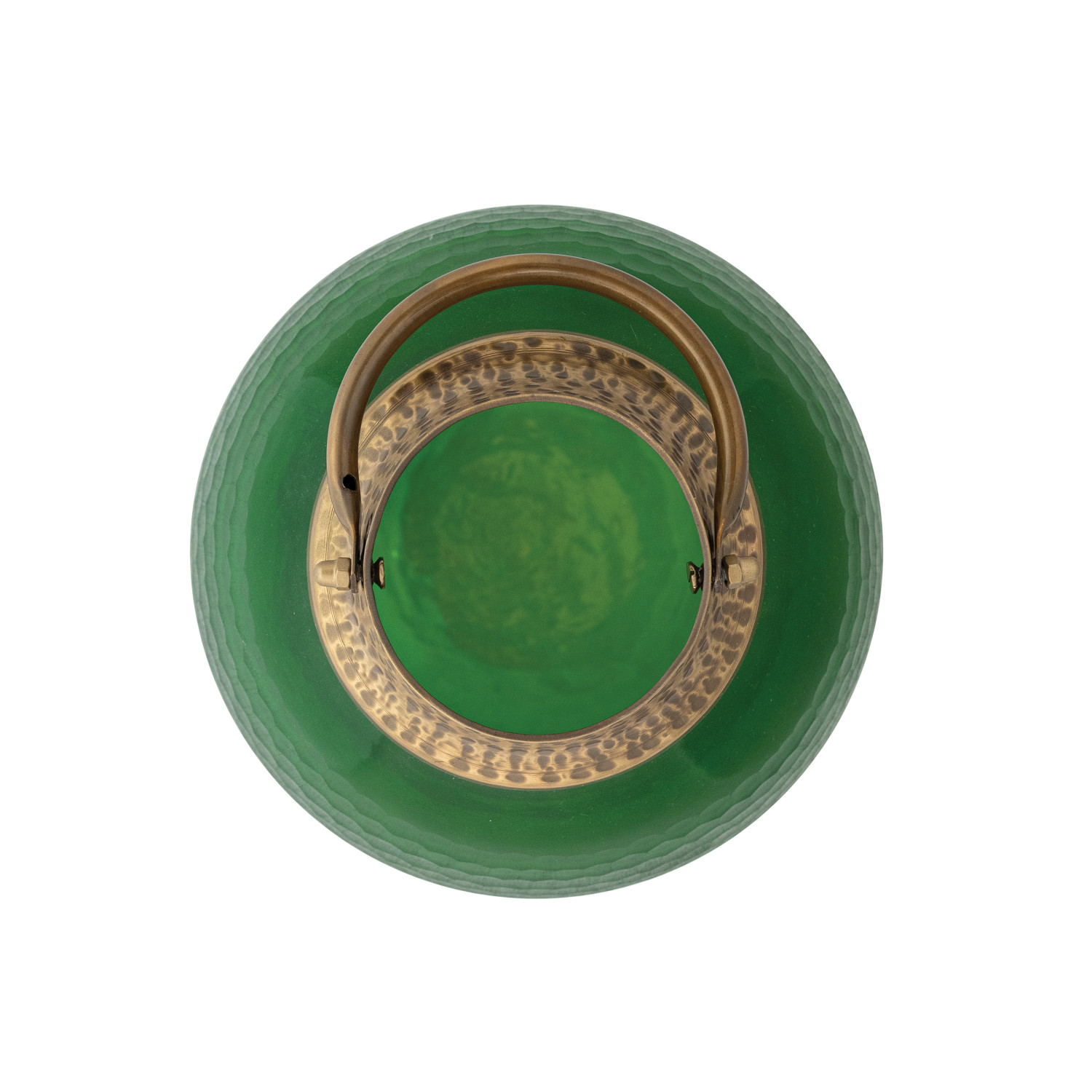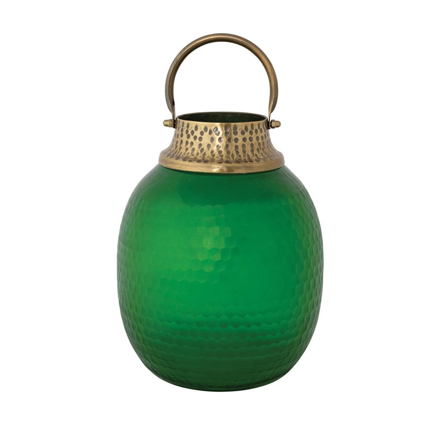 Hammered Glass & Metal Lantern, Green & Antique Gold Finish