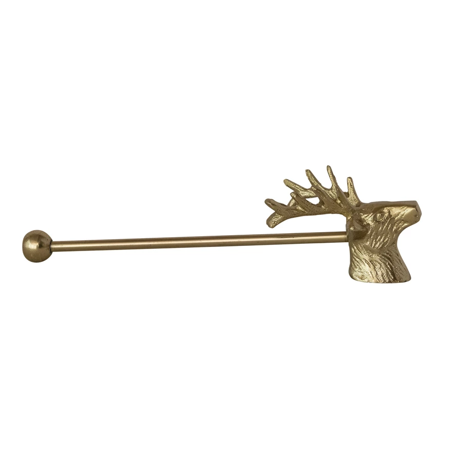 Catalog Name: 9"L x 2-1/4"H Cast Aluminum Deer Head Shaped Candle Snuffer, Gold Finish