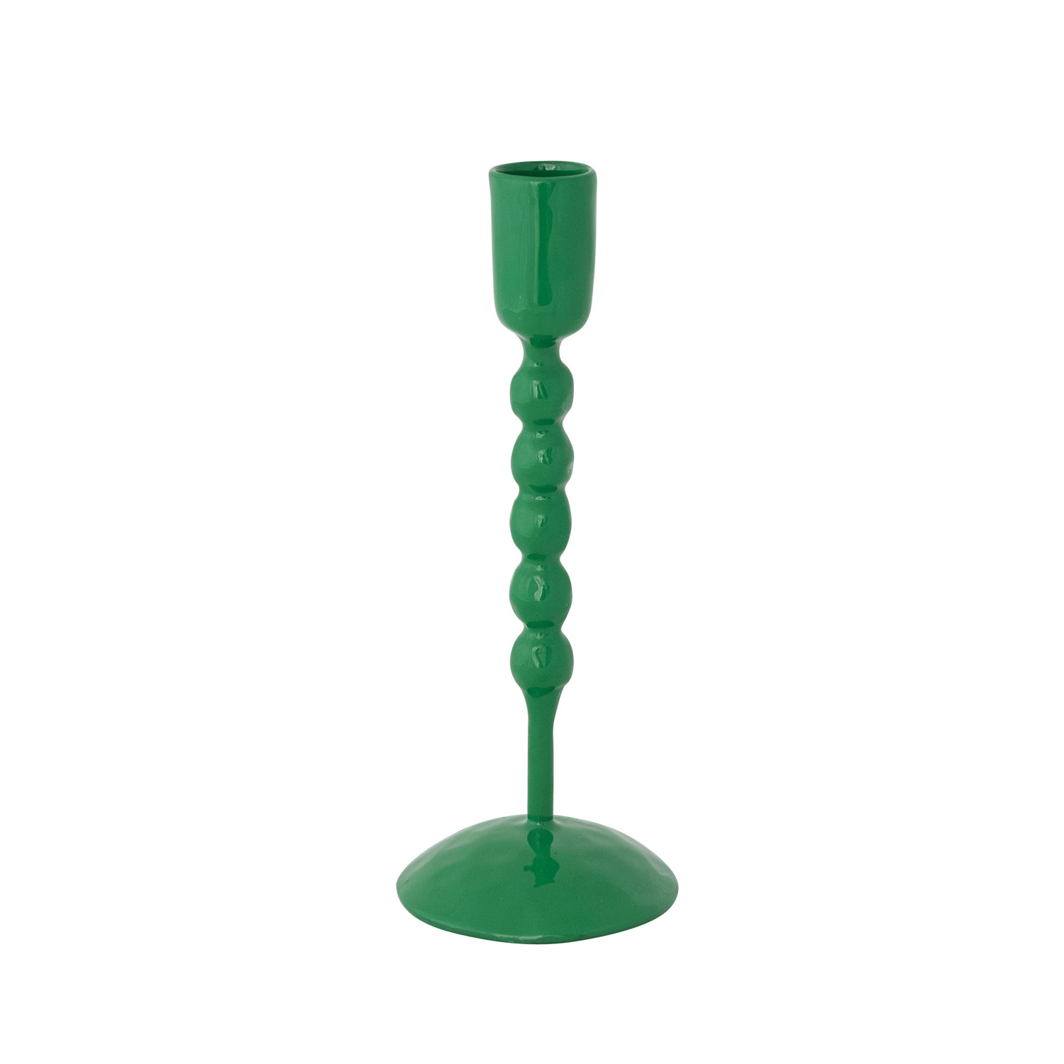 Hand-Forged Enameled Cast Iron Taper Holder, Green