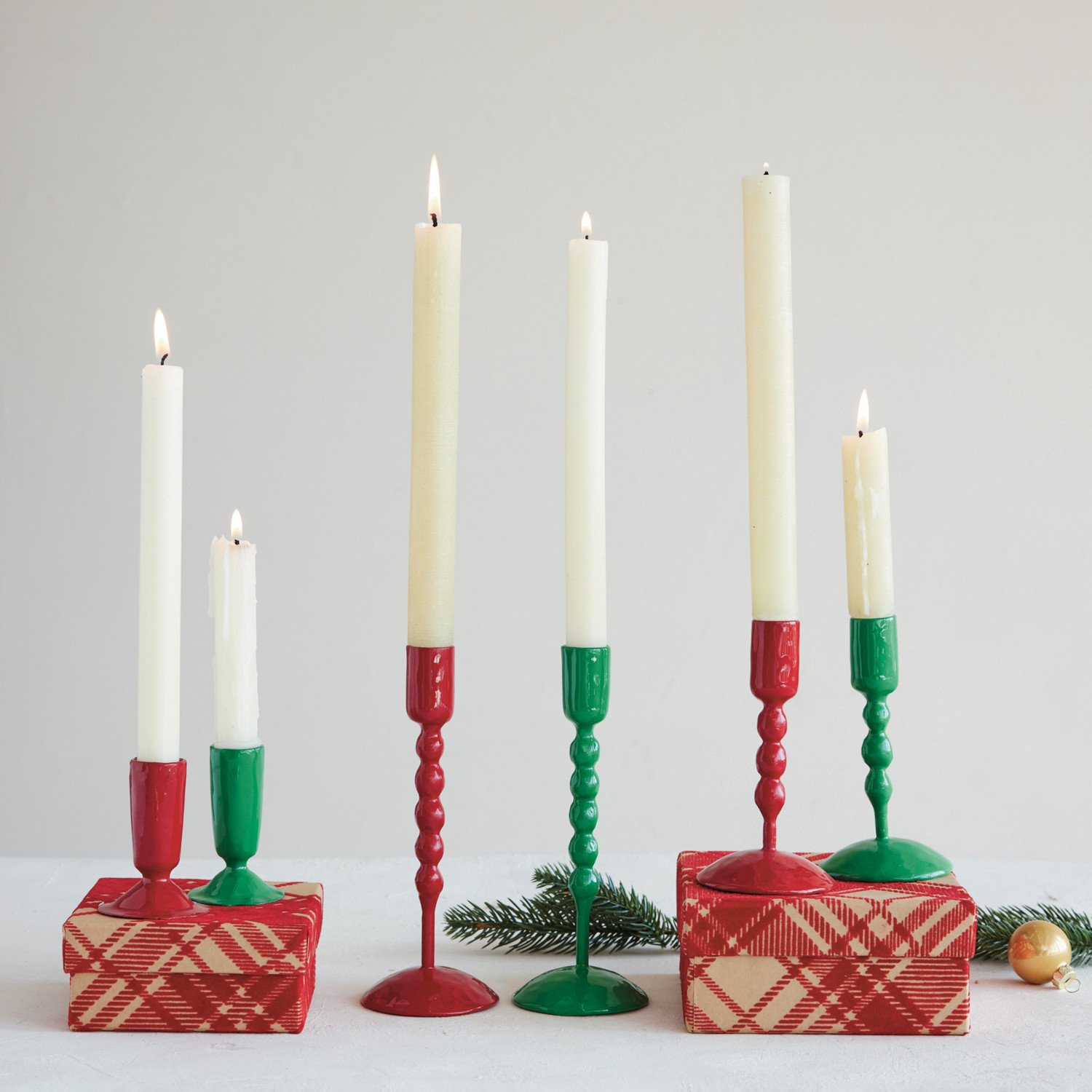 Catalog Name: 2-3/4" Round x 7-1/2"H Hand-Forged Enameled Cast Iron Taper Holder, Green