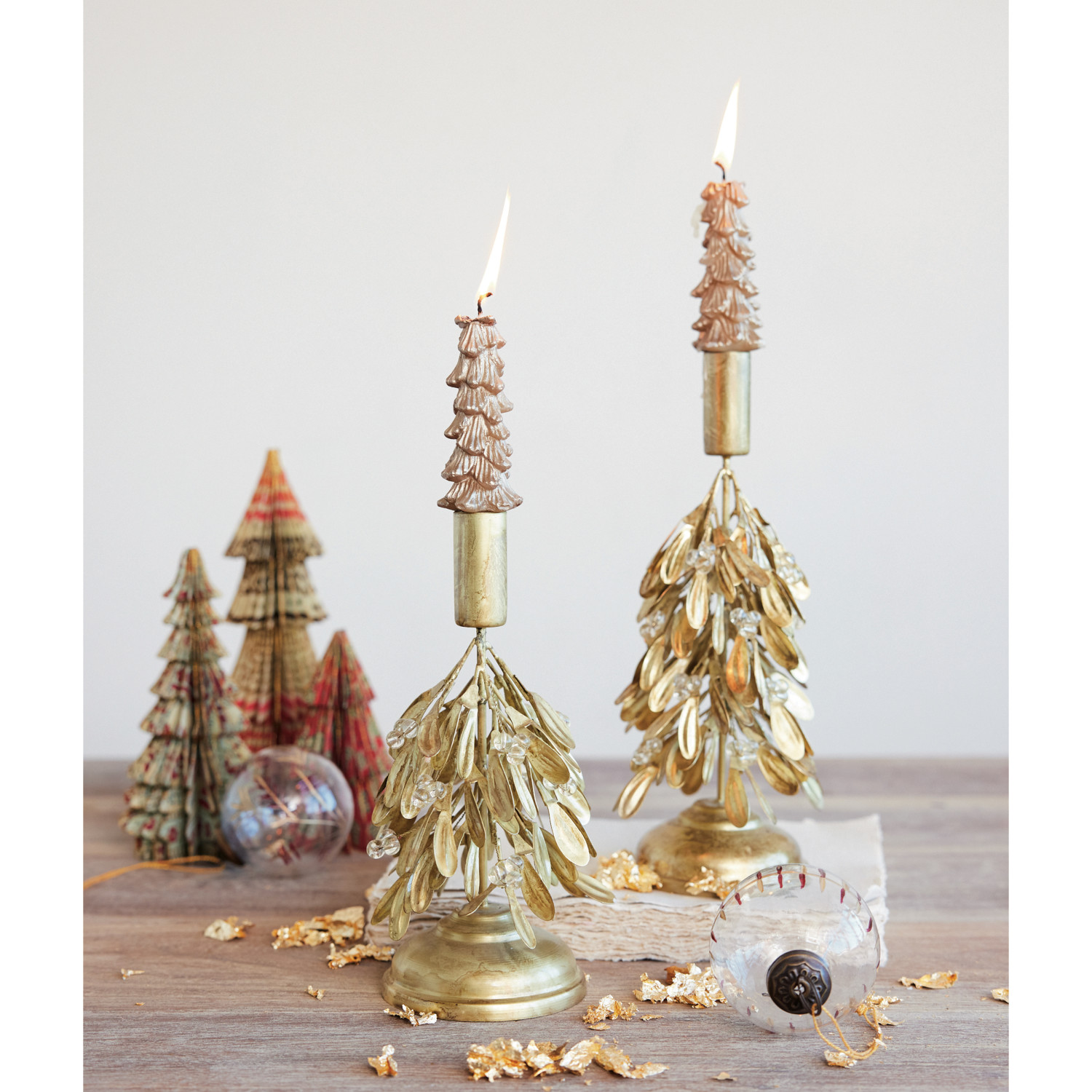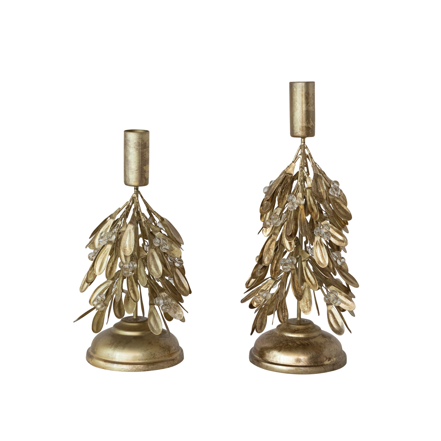 Handmade Metal & Plastic Bead Mistletoe Taper Holder, Antique Gold Finish