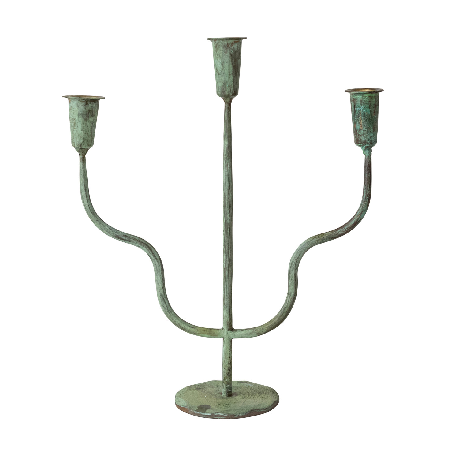 Hand-Forged Metal Candelabra, Verdigris Finish (Holds 3 Tapers)