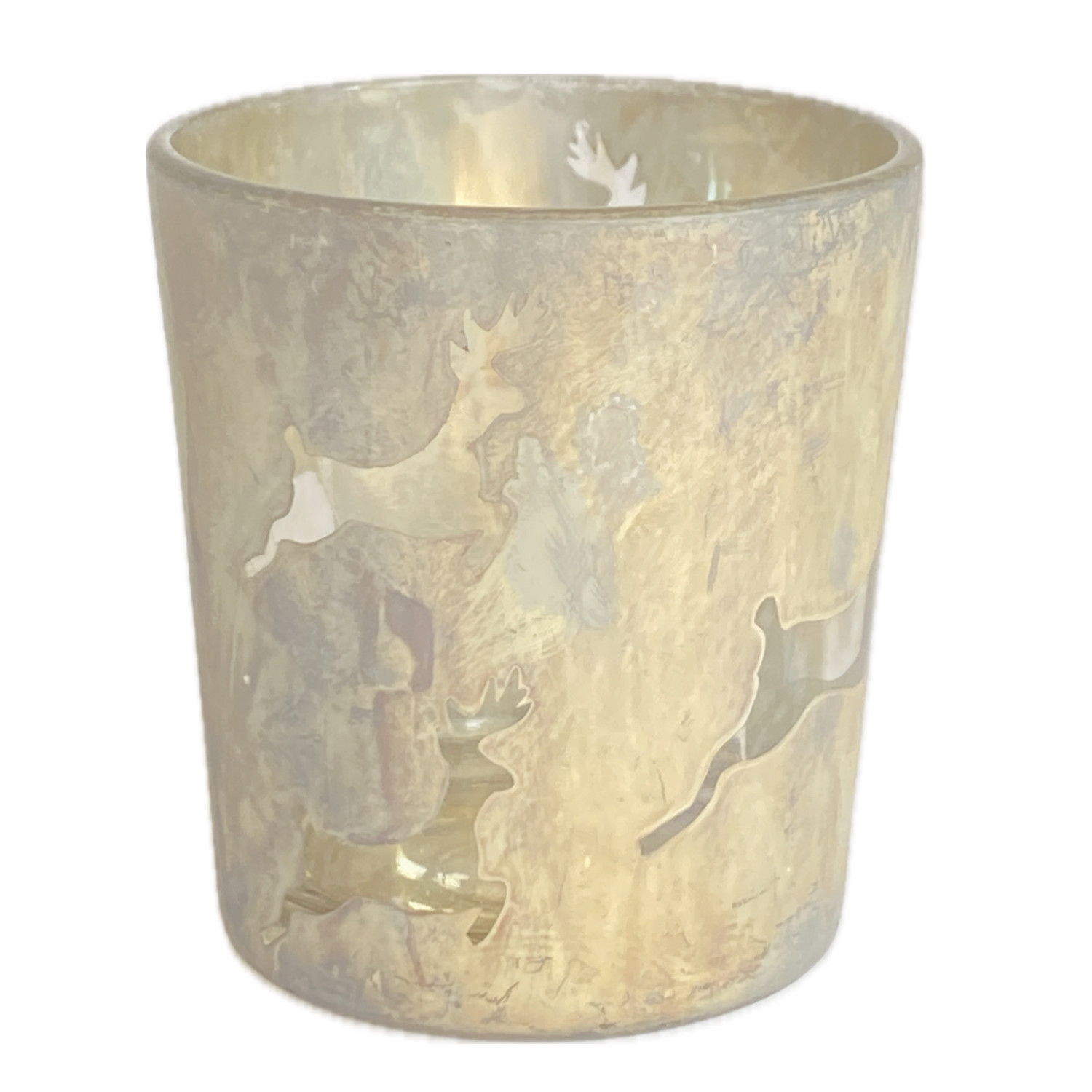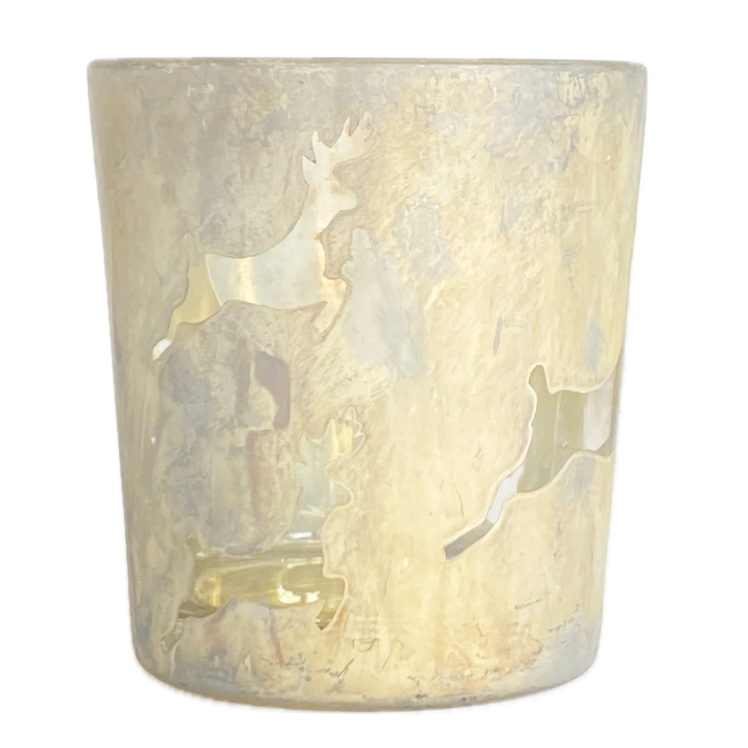 Glass Tealight/Votive Holder with Reindeer Pattern, Antique Frosted Silver Finish