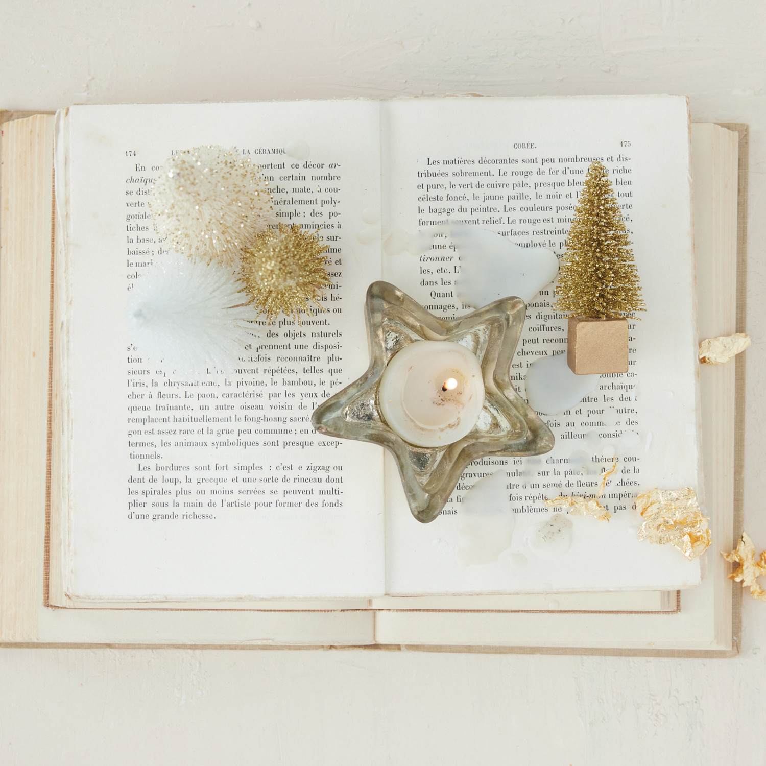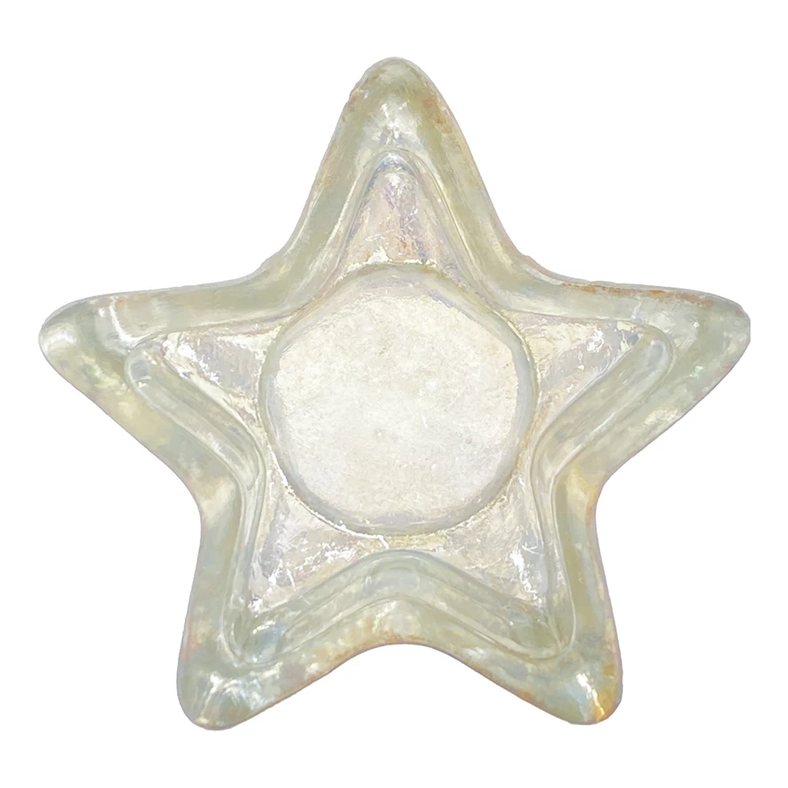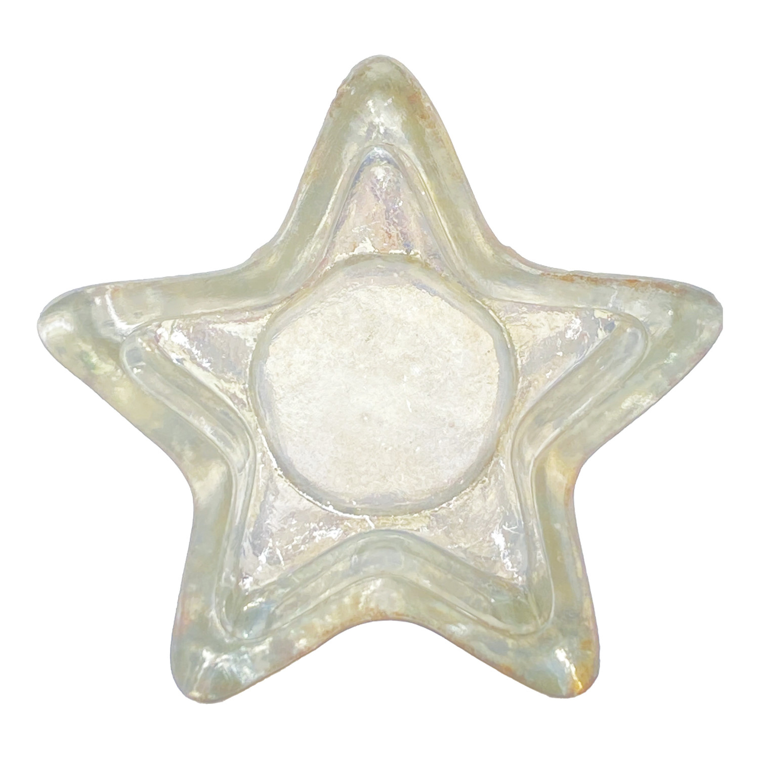 Pressed Frosted Glass Star Shaped Tealight Holder, Antique Silver Finish