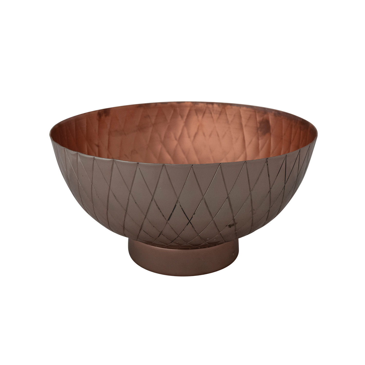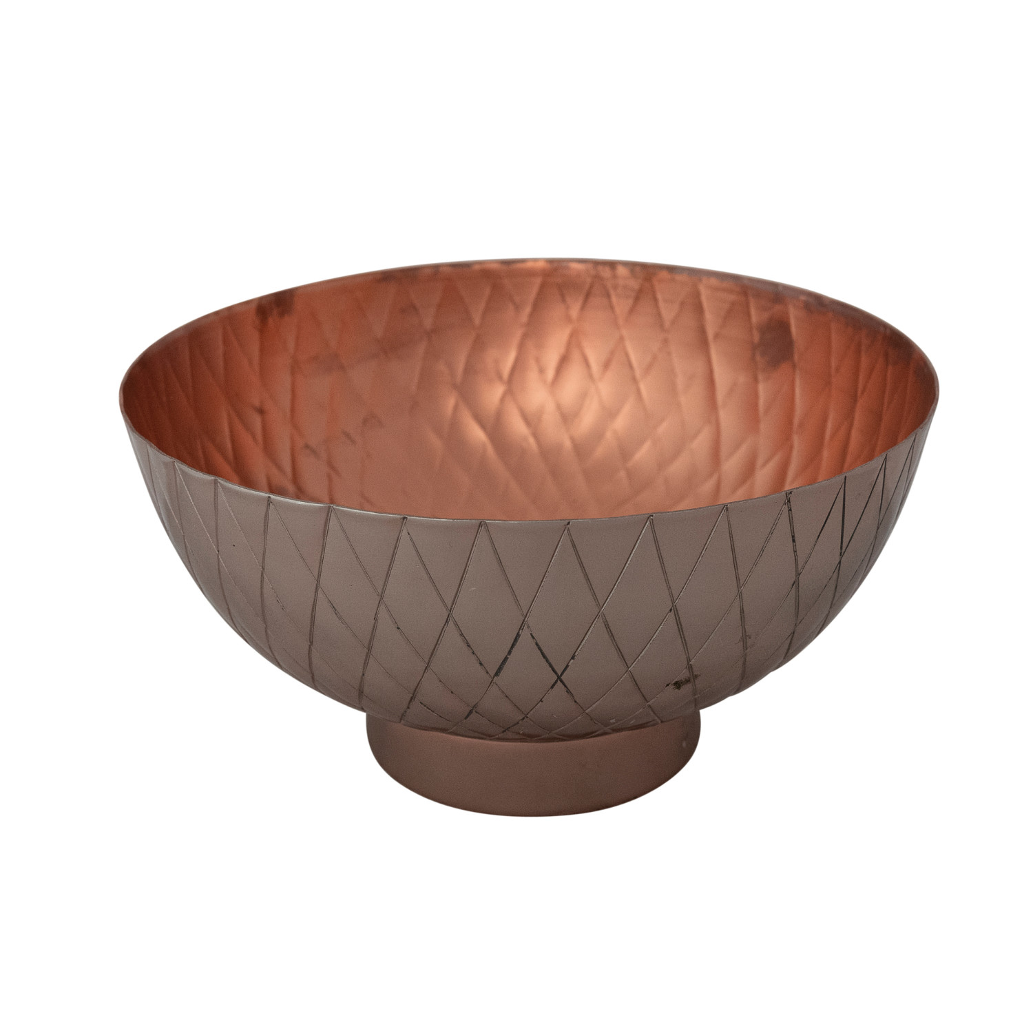 Catalog Name: 10" Round x 5-1/4"H Metal Bowl w/ Diamond Pattern, Copper Finish