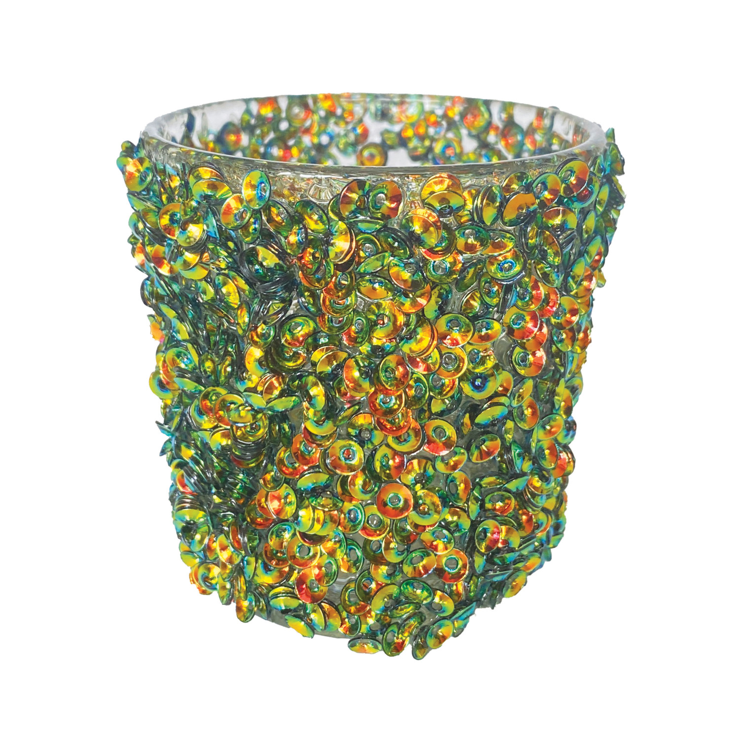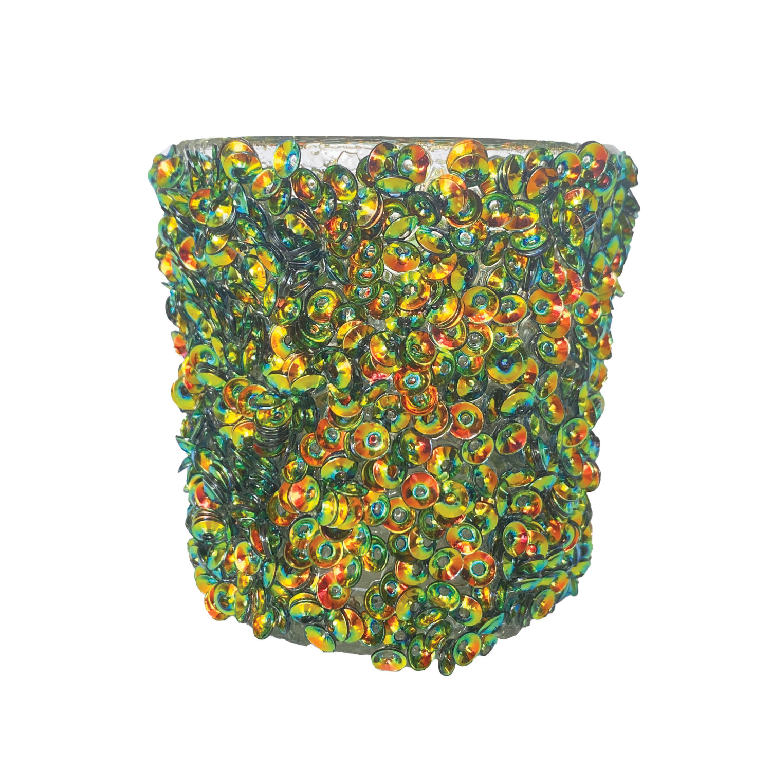 Handmade Glass Tealight/Votive Holder with Iridescent Sequins