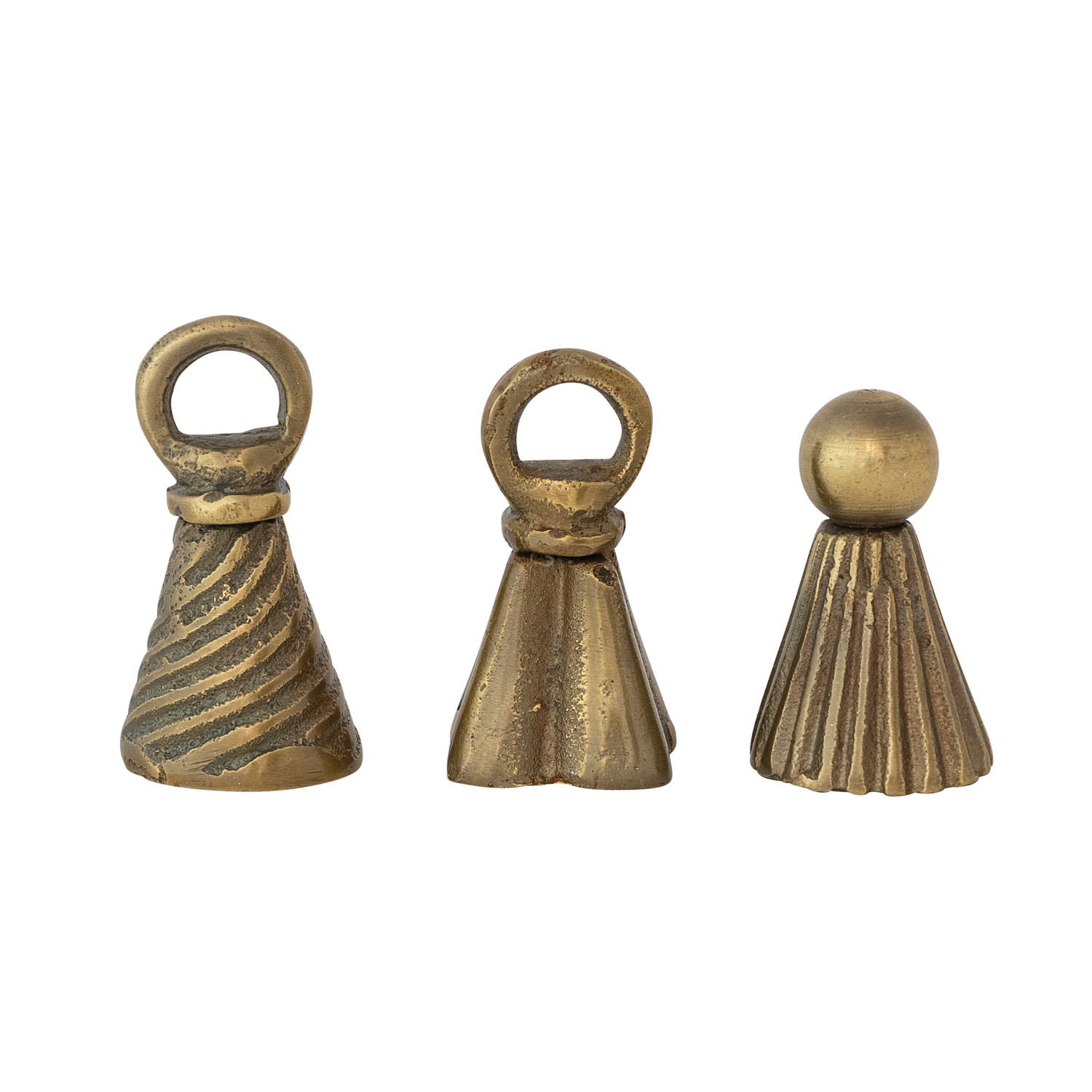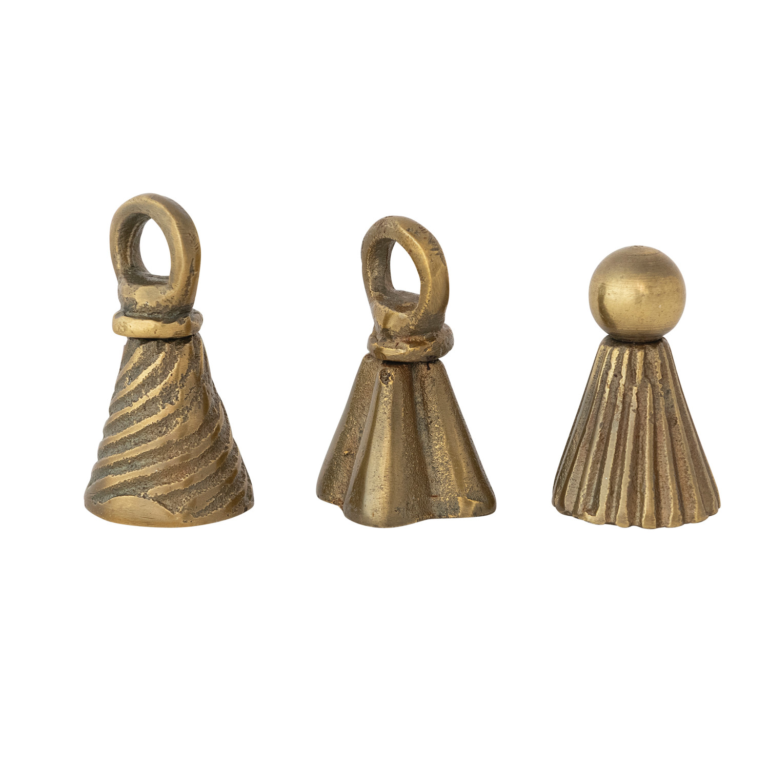 Catalog Name: 1-1/2" Round X 2-1/4"H Cast Aluminum Bell Shaped Candle Snuffer, Antique Gold Finish, 3 Styles