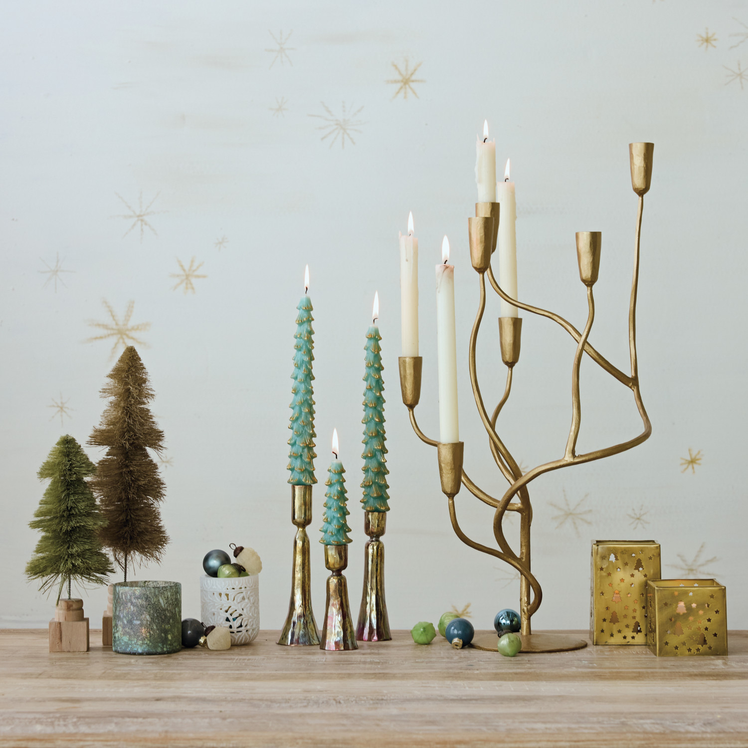 Metal Tealight/Votive Holder with Trees & Stars Cut-Outs, Gold Finish