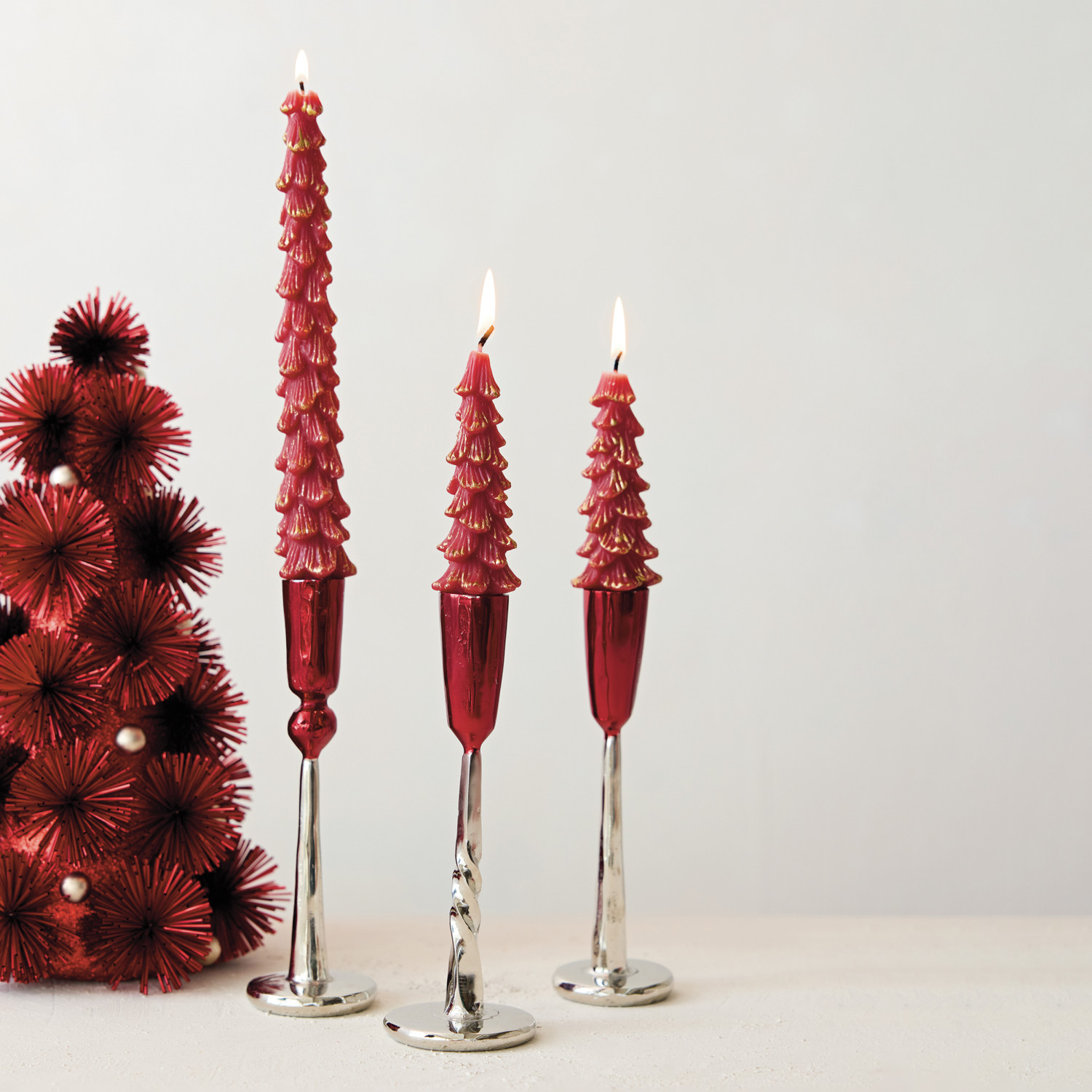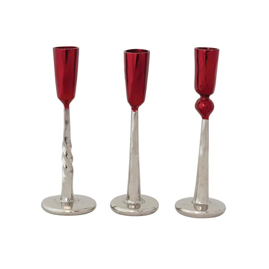 Hand-Forged Enameled Iron Taper Holder, Red & Nickel Finish, 3 Styles