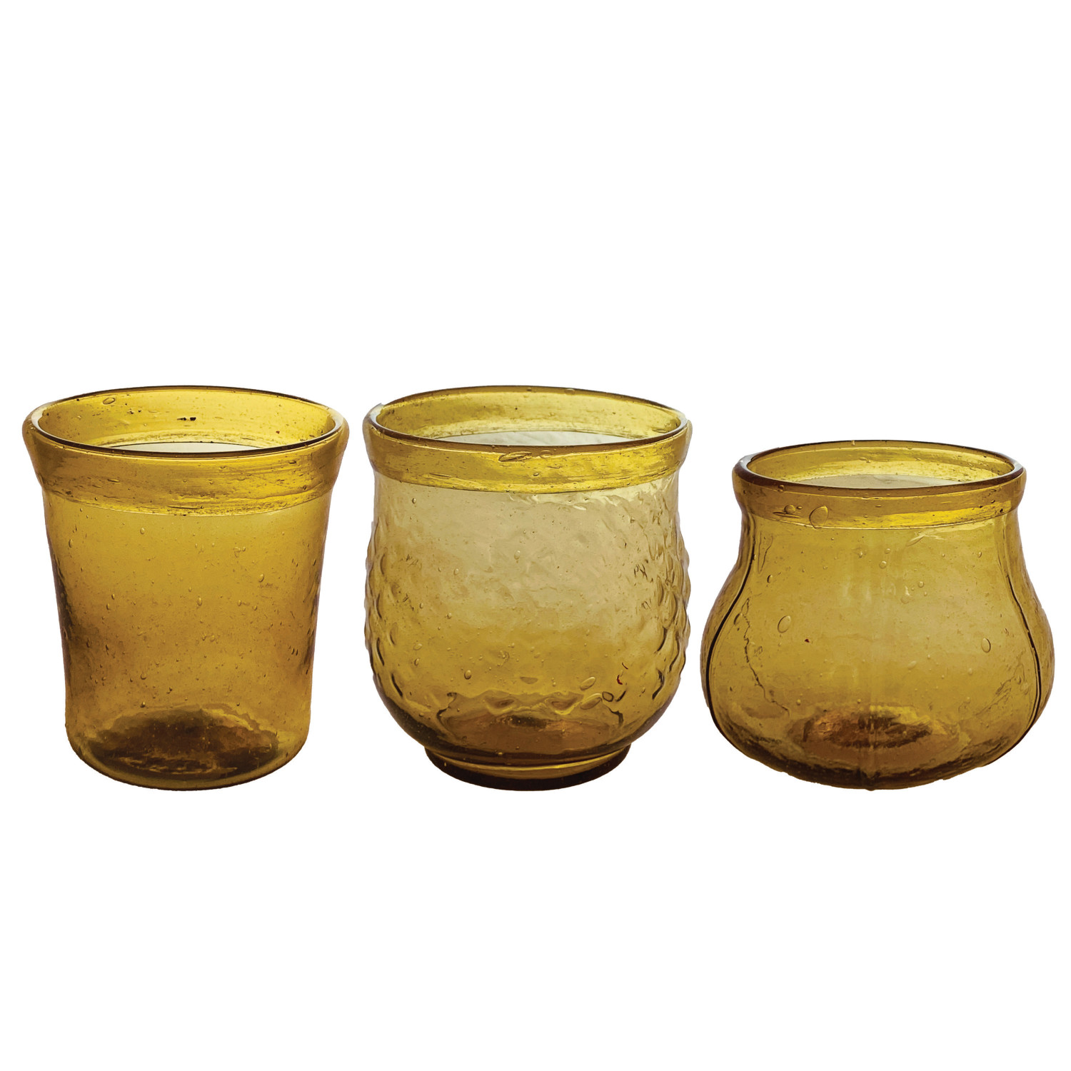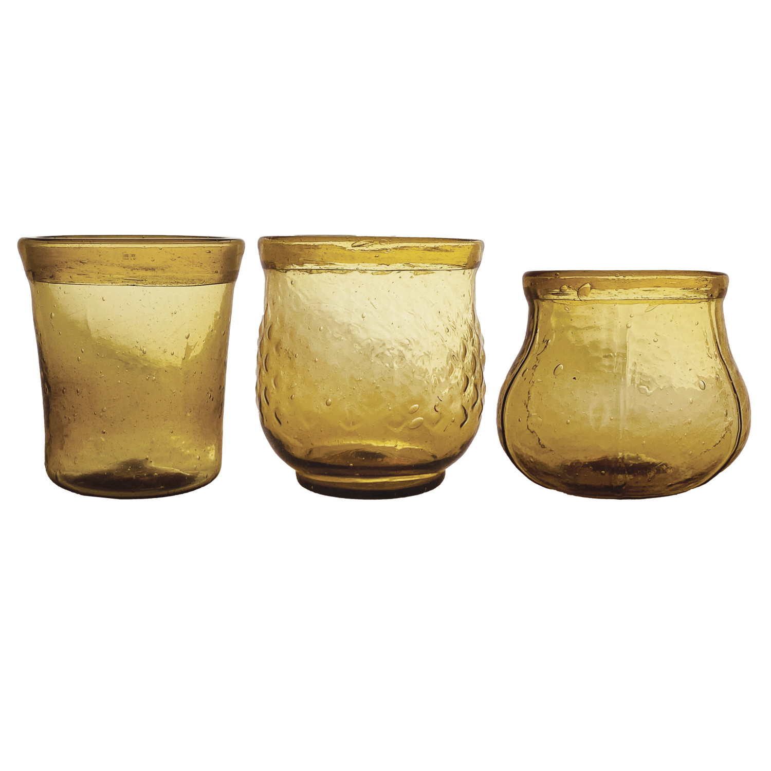 Catalog Name: Approximately 3" Round Hand-Blown Glass Tealight/Votive Holder, Amber Color, 3 Styles