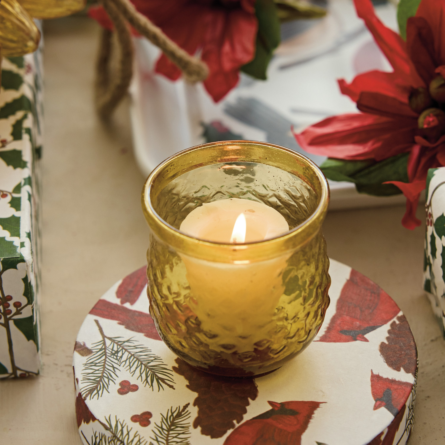 Round Hand-Blown Glass Tealight/Votive Holder, Amber Color, 3 Styles