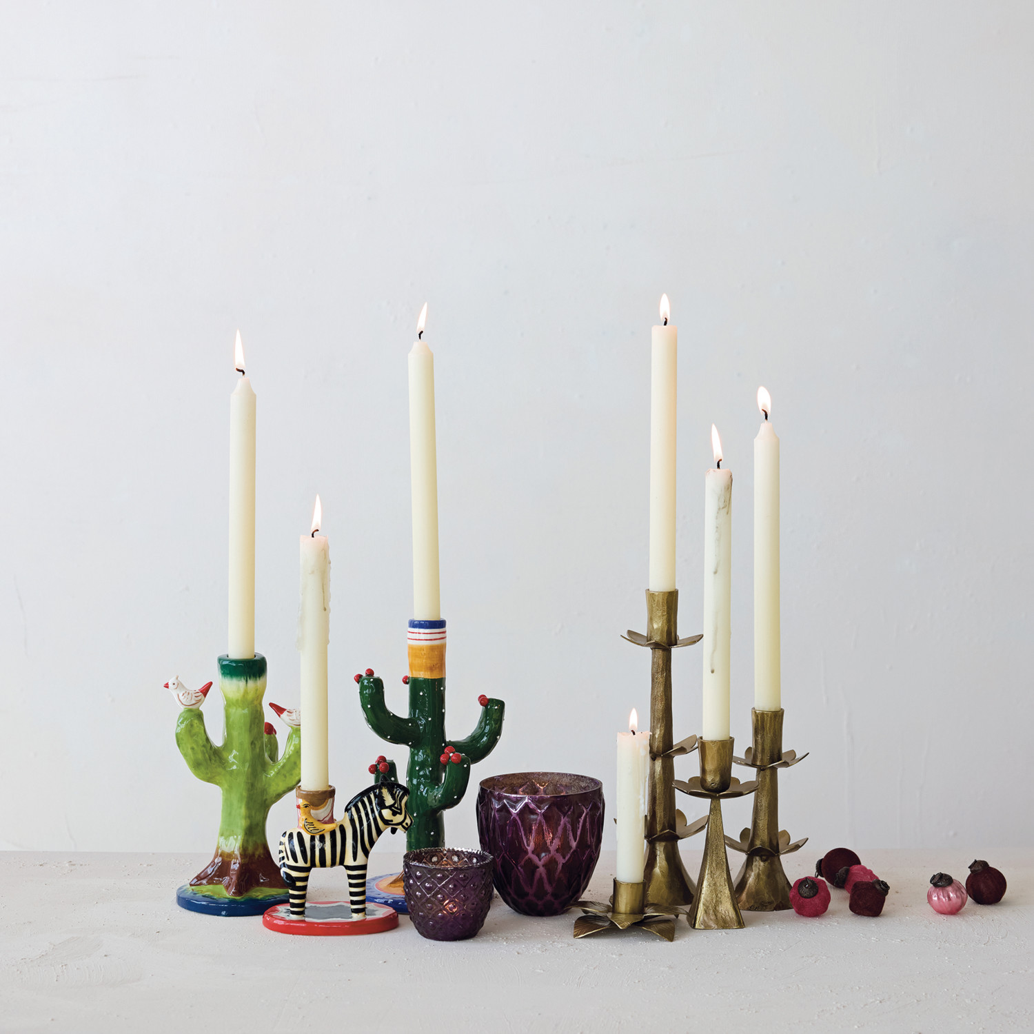 Catalog Name: 5-1/2" Round x 9"H Hand-Painted Ceramic Vintage Reproduction Cactus Shaped Taper Holder w/ Bird, Multi Color