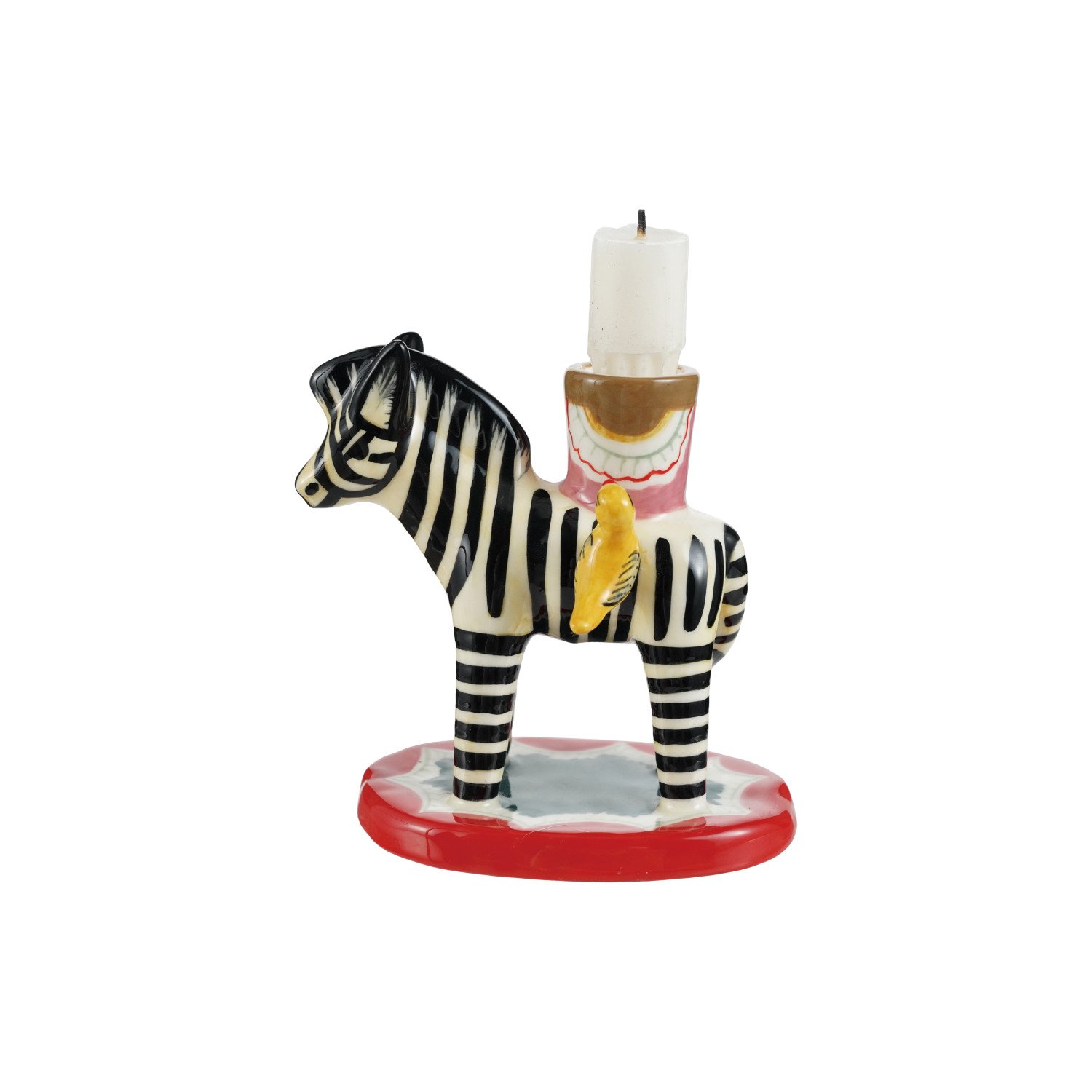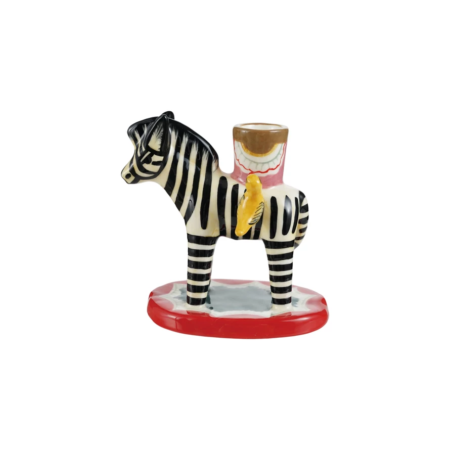 Catalog Name: 4-3/4"L x 3"W x 4-1/2"H Hand-Painted Stoneware Vintage Reproduction Zebra Shaped Taper Holder w/ Birds, Multi Color