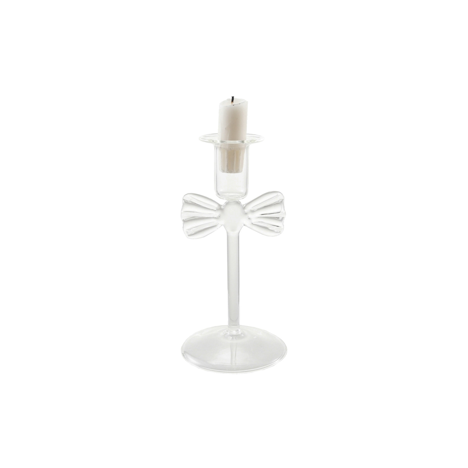 Catalog Name: 3-1/2" Round x 7-1/4"H Glass Taper Holder w/ Bow