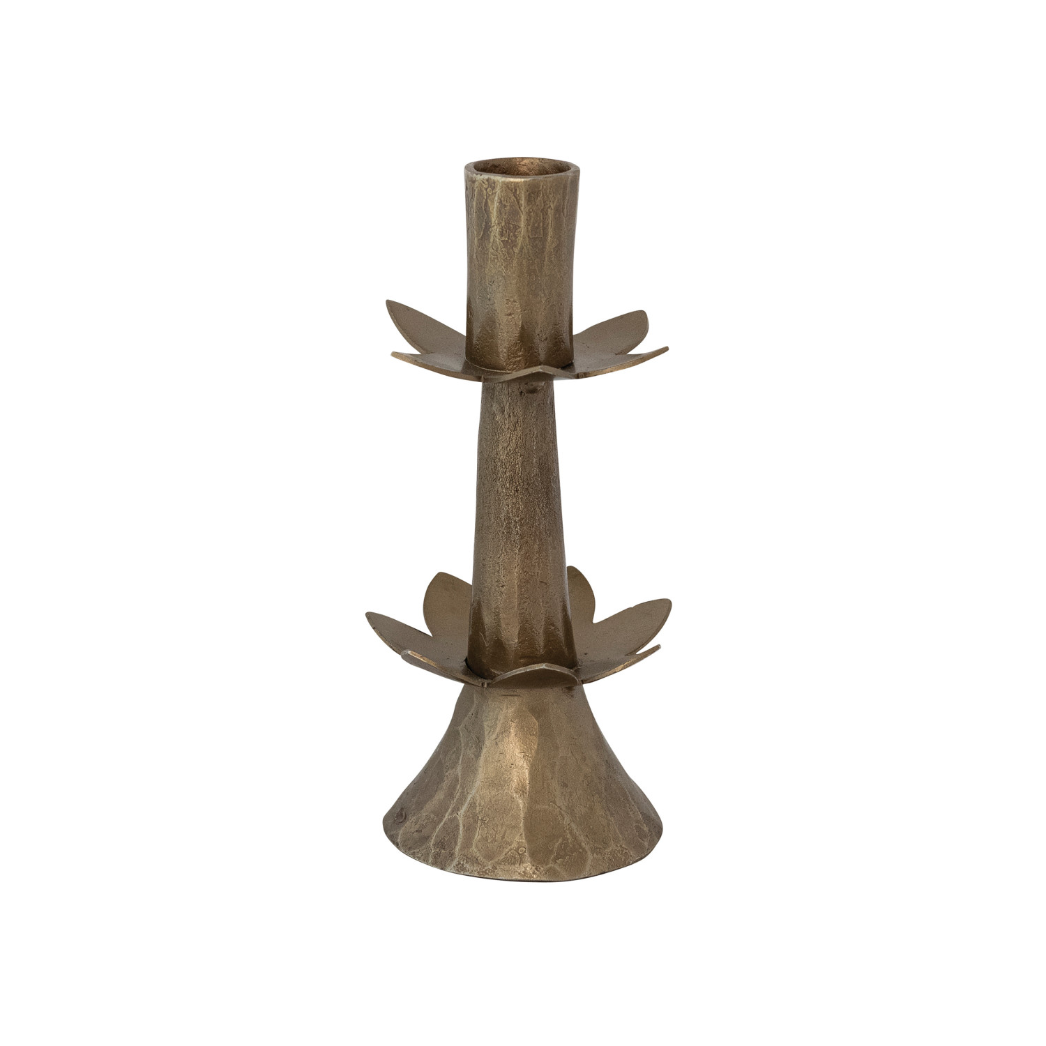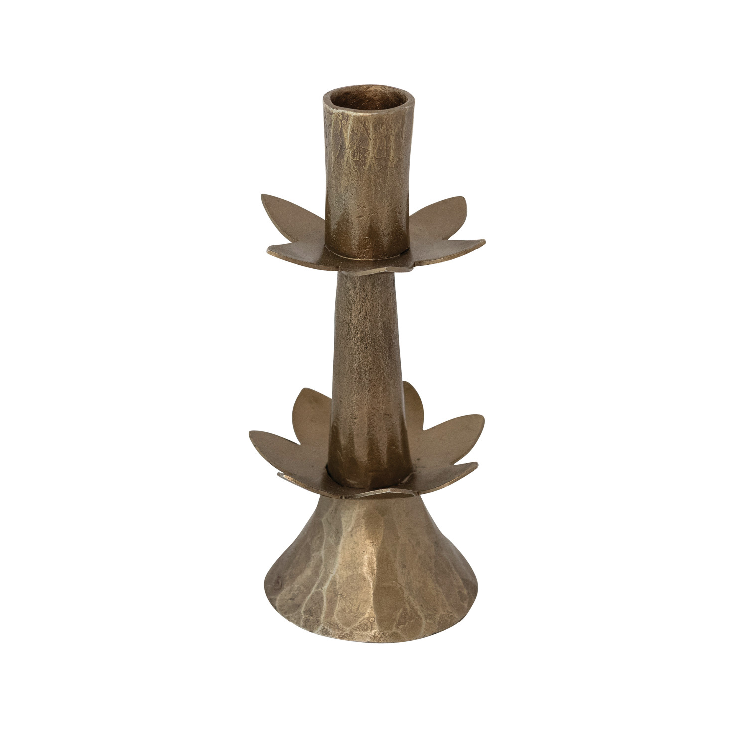 Catalog Name: 2-3/4" Round x 6-1/2"H Hand-Forged Metal Flower Shaped Taper Holder, Antique Brass Finish