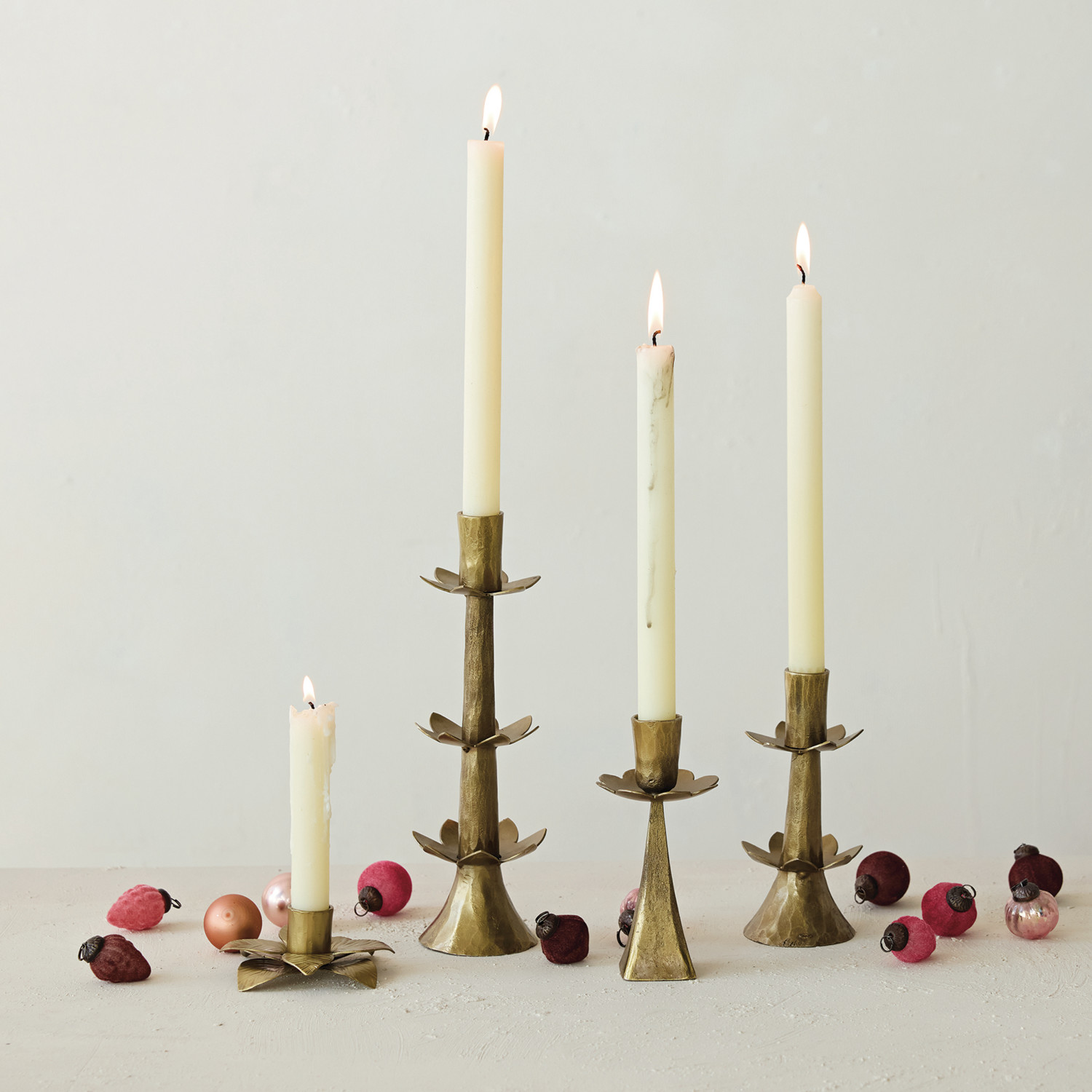 Hand-Forged Metal Flower Shaped Taper Holder, Antique Brass Finish