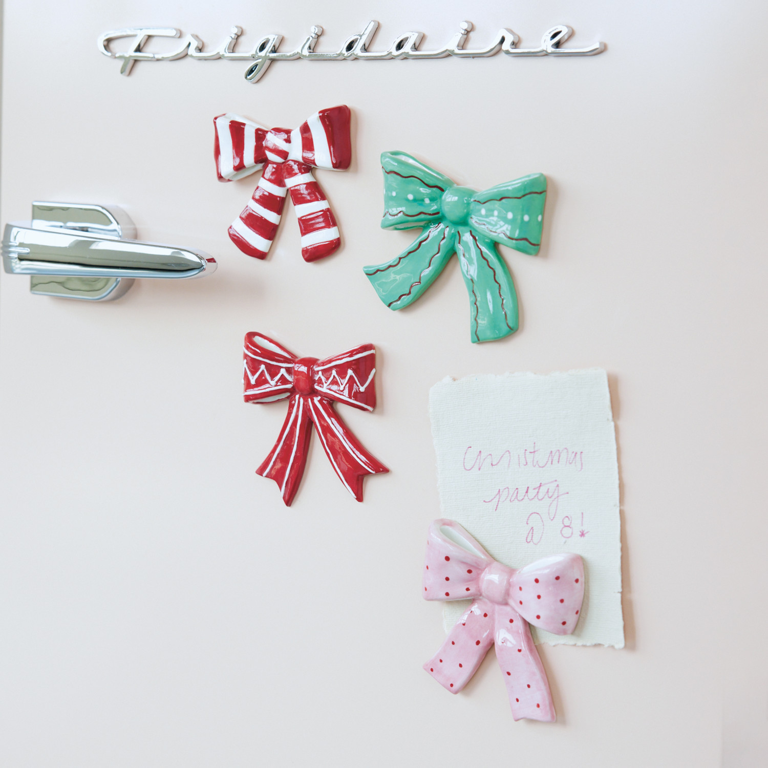 Hand-Painted Stoneware Bow Shaped Magnet with Pattern, 4 Styles ©