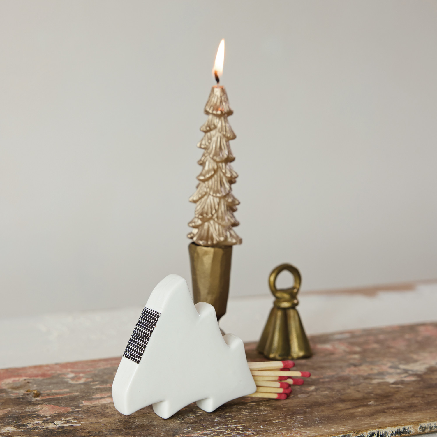 Catalog Name: 3-1/4"L x 3-1/4"H Stoneware Tree Shaped Match Holder w/ Striker, White