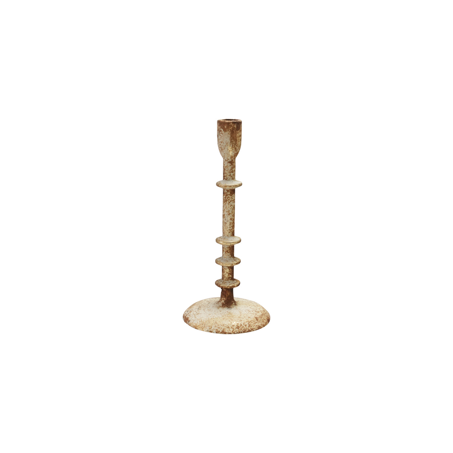 Catalog Name: 4" Round x 10-1/4"H Metal Taper Holder, Distressed Gold Finish
