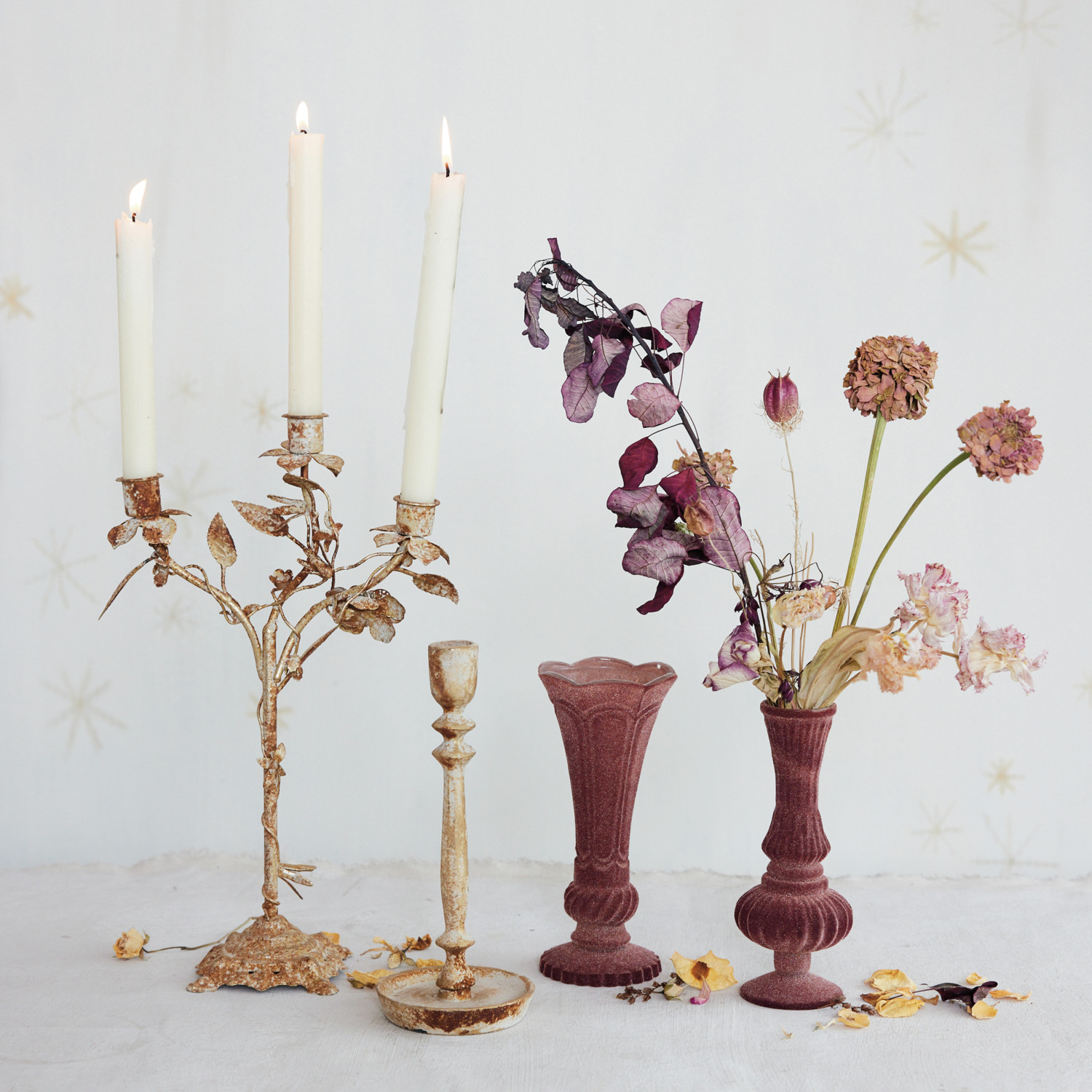 Metal Taper Holder, Distressed Gold Finish