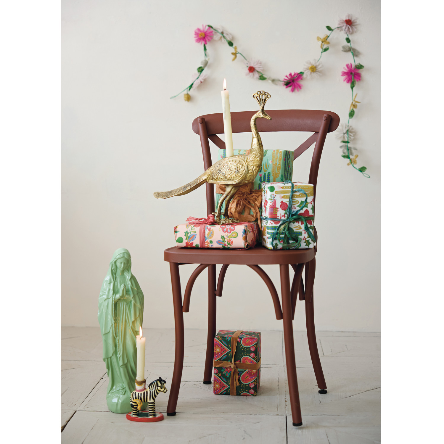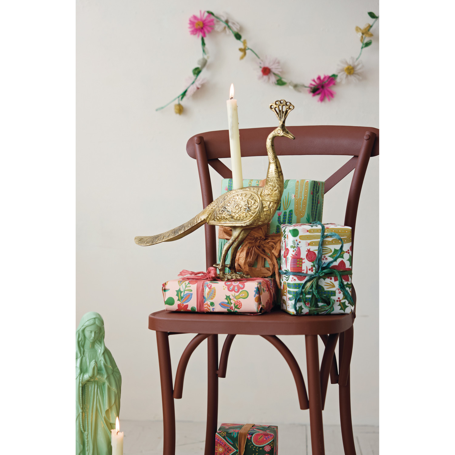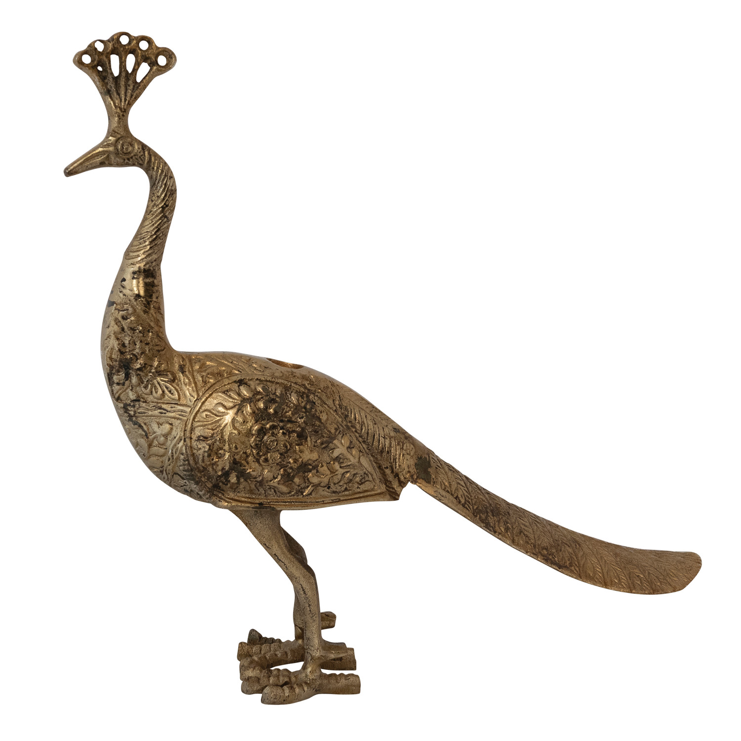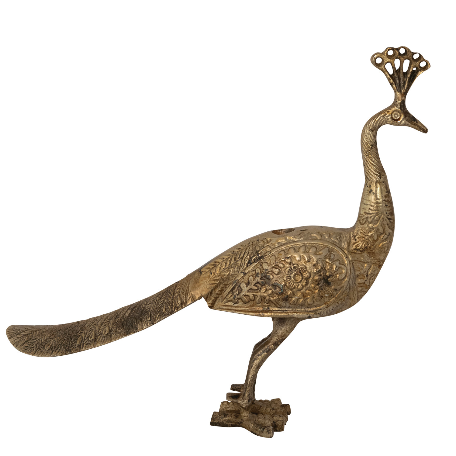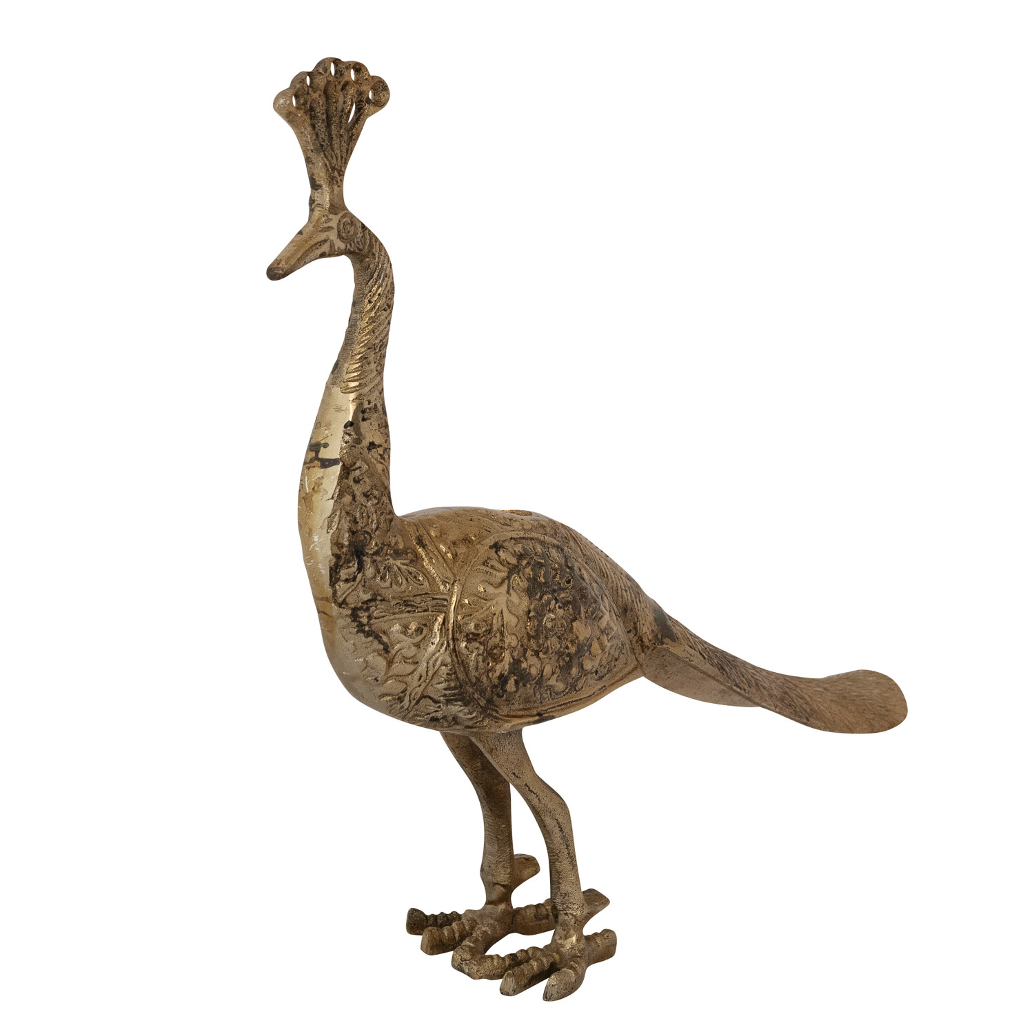 Cast Aluminum Peacock Shaped Taper Holder, Antique Brass Finish
