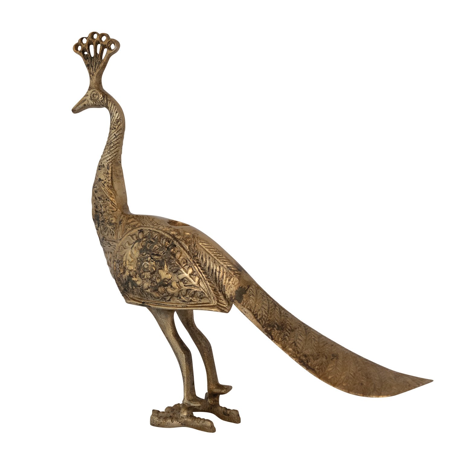 Catalog Name: 16-1/2"L x 3-1/2"W x 15"H Cast Aluminum Peacock Shaped Taper Holder, Antique Brass Finish
