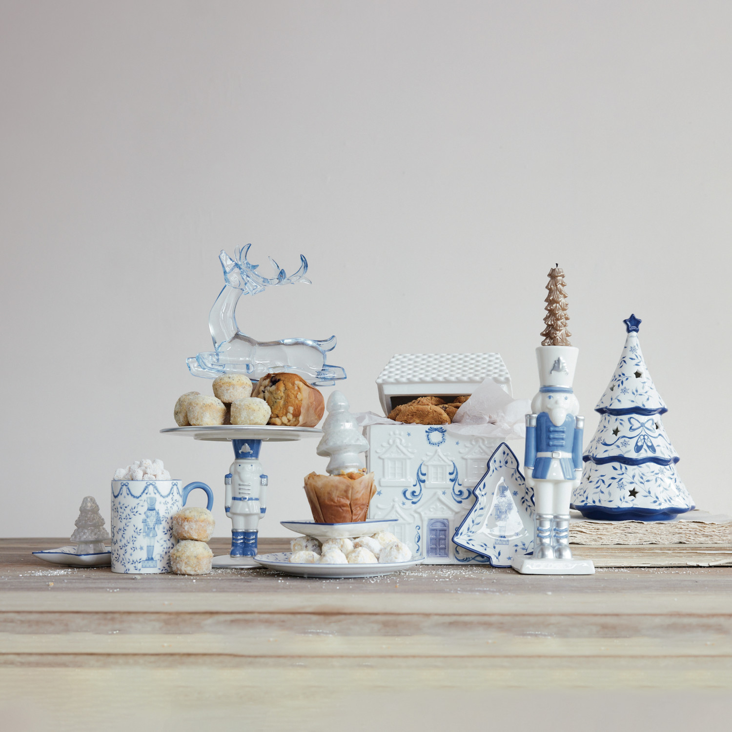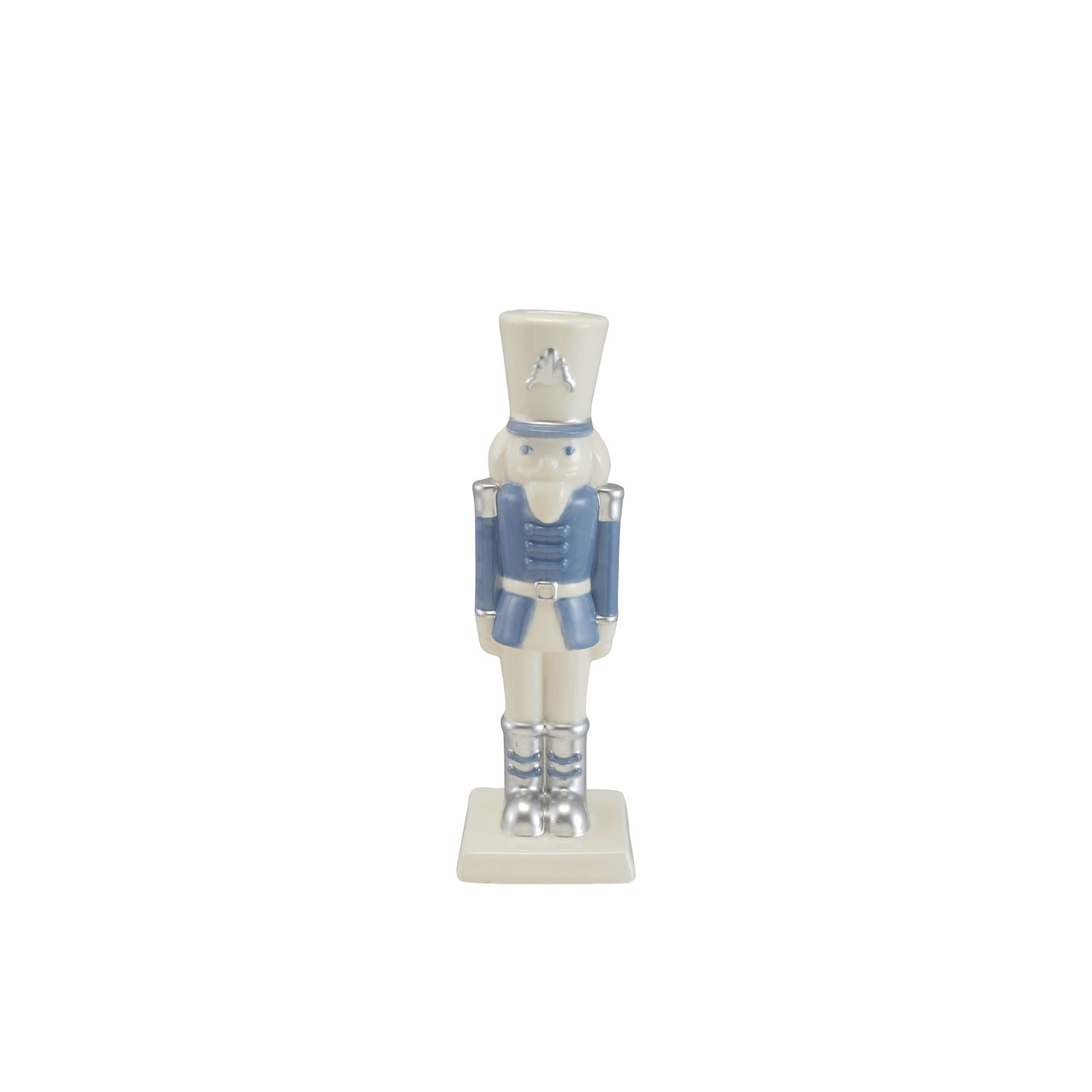 Ceramic Nutcracker Shaped Taper Holder with Silver Electroplating, White & Blue
